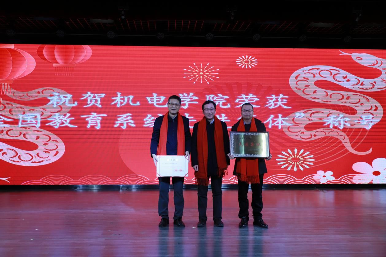 张卫红院士为永利集团88304官网颁发“全国教育系统先进集体”奖状,这一荣誉是对永利集团88304官网过去在各项工作所取得成绩的高度认可,张映锋、常洪龙代表全体教职工上台领奖。