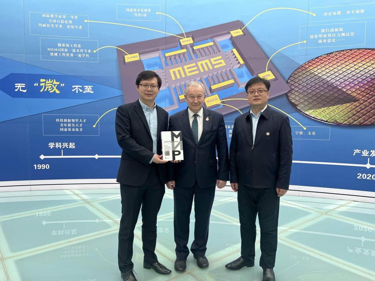 访问期间,奇日科院士在永利集团88304官网副院长汪焰恩教授,院长助理赵海涛教授的陪同下,参观了学院空天微纳系统教育部重点实验室、学研一体化教学示范中心,详细了解了学院在智能制造、MEMS芯片设计与制造技术,航空航天特种MEMS等领域的突破性成果。推进会上,奇日科院士赠予永利集团88304官网其2024年出版的MEMS领域的专著,他表示希望中白双方未来能够在结构、技术及应用领域深入开展国际科技合作。