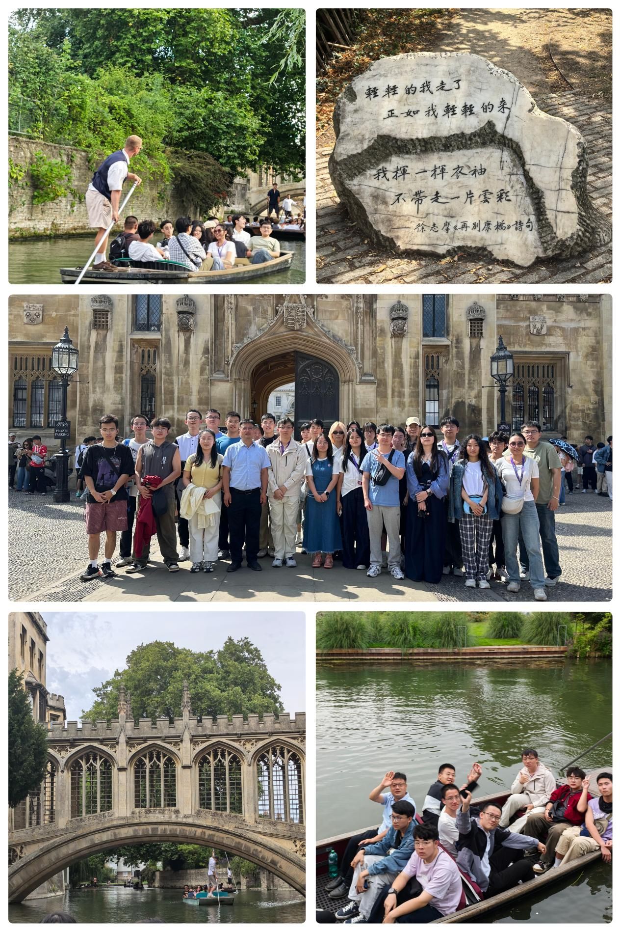 感受人文与自然之美:同学们漫步于国王学院宏伟的哥特式庭院,感受一砖一瓦中沉淀的历史厚重感。最令人难忘的莫过于康河泛舟,在专业船夫的引领下,小船沿徐志摩诗中的康河缓缓前行,两岸垂柳依依、百年校舍掩映,让同学们在静谧风光中洗去了学术会议的疲惫,沉浸于当下的美好。