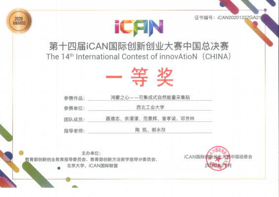 近日,微纳米小精灵创新基地传来喜讯,永利官网在浙江余姚举行的第十四届iCAN国际创新创业大赛中国总决赛中再创佳绩。永利官网学生在本次比赛中斩获国家级一等奖3项,二等奖3项,三等奖14项。其中“鸿蒙之心——可集成式自然能量采集贴”取得了中国五强第一名的好成绩,将代表中国赛区参加2021年度的iCAN国际创新创业总决赛。永利官网也因此蝉联两届全国冠军!