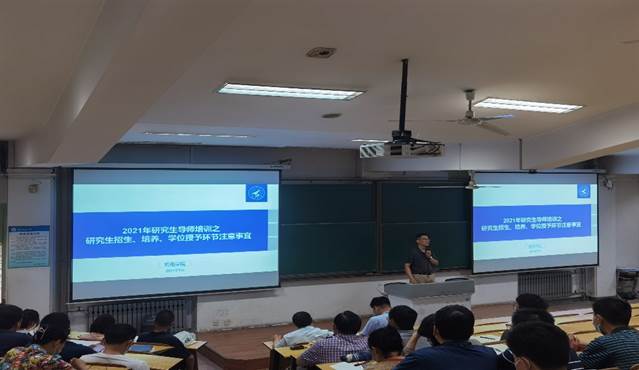 为进一步明确研究生导师岗位职责,保证研究生培养质量和研究生教育工作的管理质量,根据《永利集团88304官网研究生导师培训管理办法》(研字〔2021〕4号)文件精神和永利集团88304官网研究生导师培训工作方案,永利集团88304官网于7月2日上午11时,在西馆XB105召开2021年研究生导师培训大会。张映锋书记主持会议,朱继宏院长对于研究生教育工作的重要性和紧迫性进行了强调,常洪龙副院长对最新版的《研究生导师岗位管理相关文件解读》及《研究生招生、培养、学位授予》进行专题报告。