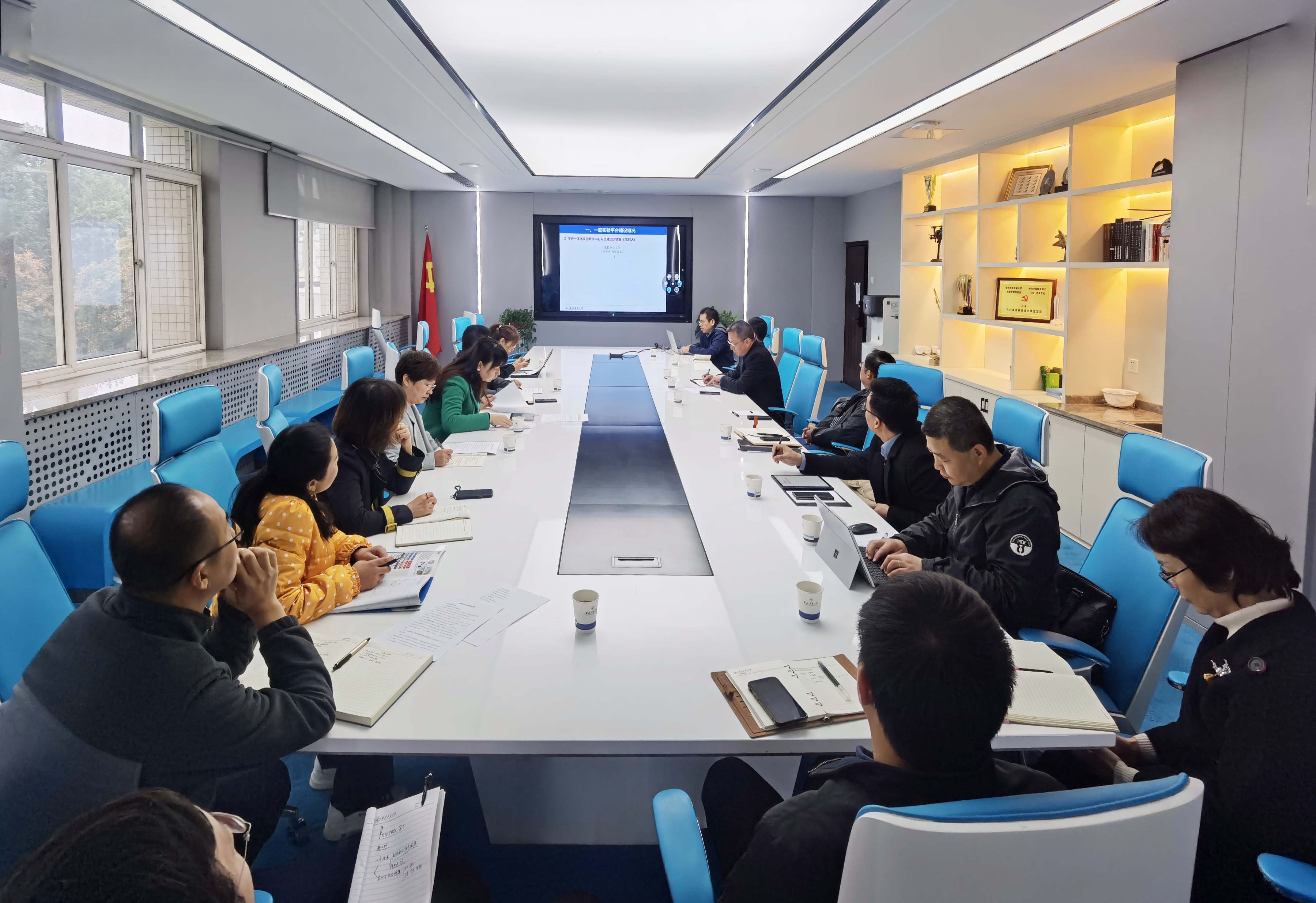 机械基础国家级实验教学示范中心副主任王琳副教授,针对学院近年来开展的实验教学;实验资源和科研的整合;国家级实验教学示范中心验收准备;一流实验平台、实验队伍建设;实验室管理及开放共享;改基项目执行等相关情况进行专题汇报。