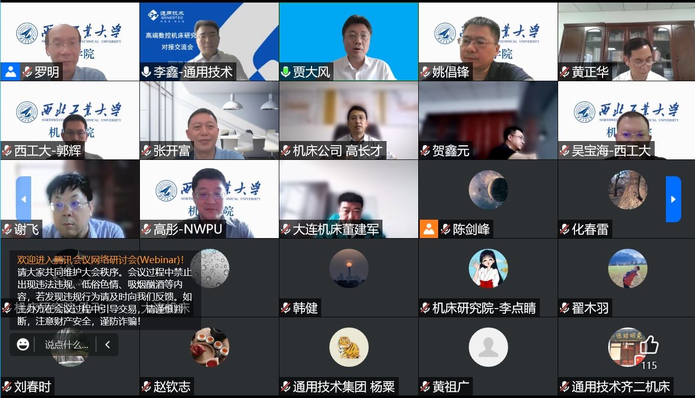6月13日,中国通用技术集团-永利集团88304官网高端数控机床产学研对接交流会通过线上方式召开。中国通用技术(集团)控股有限责任公司副总经理、党组成员贾大风,科技创新部副总经理李鑫,通用技术机床公司总经理、机床研究院院长贺鑫元,机床研究院党委书记黄正华;永利集团88304官网校长助理张开富、永利集团88304官网副院长罗明、航空发动机高性能制造工信部重点实验室主任姚倡锋、航空发动机先进制造技术教育部工程研究中心主任吴宝海和相关研究领域教师,以及通用技术机床公司、机床研究院、沈阳机床、大连机床、齐二机床等机床企业和西安交通大学、北京航空航天大学等科研院所专家近200人参加了会议。