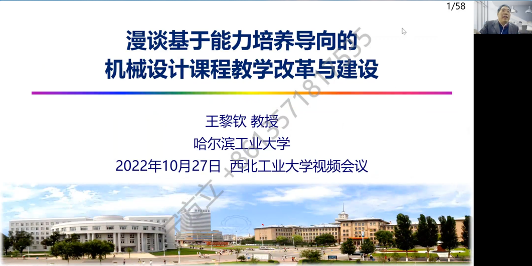 2022年10月27日下午,永利集团88304官网机械学科论坛邀请哈工大“航空航天轴承技术及装备”工信部重点实验室主任、教育部高等学校机械基础课程教学指导分委员会副主任委员,哈尔滨工业大学王黎钦教授以腾讯会议形式做了“漫谈基于能力培养导向的机械设计课程教学改革与建设”的教学报告。该报告还同步通过“机工大讲坛”同步进行直播,在线参会人数达到了2000多人次。永利集团88304官网教学副院长常智勇教授、国家级教学名师葛文杰教授参会。报告会由宁方立教授主持。