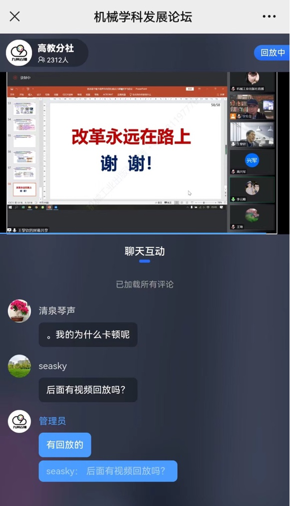 在报告结束之后,王黎钦教授还与线上的全国机械设计一线教师进行了精彩交流互动。