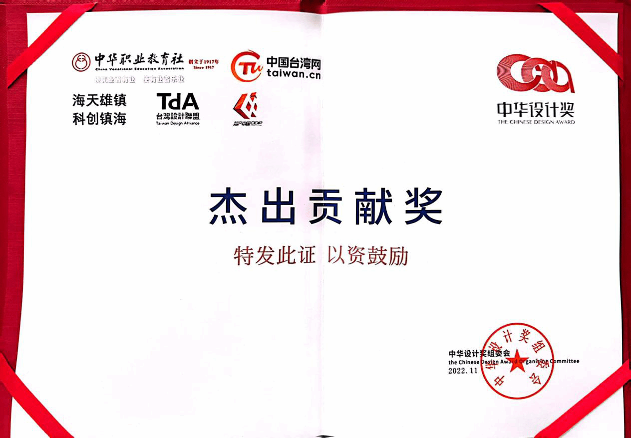 永利集团88304官网工业设计系余隋怀教授连续担任中华设计奖评委,在选拔具有创新意识和优秀设计能力的青年设计人才、增进两岸青年设计人才的交流等方面做出了突出的贡献,荣获本届中华设计奖杰出贡献奖。