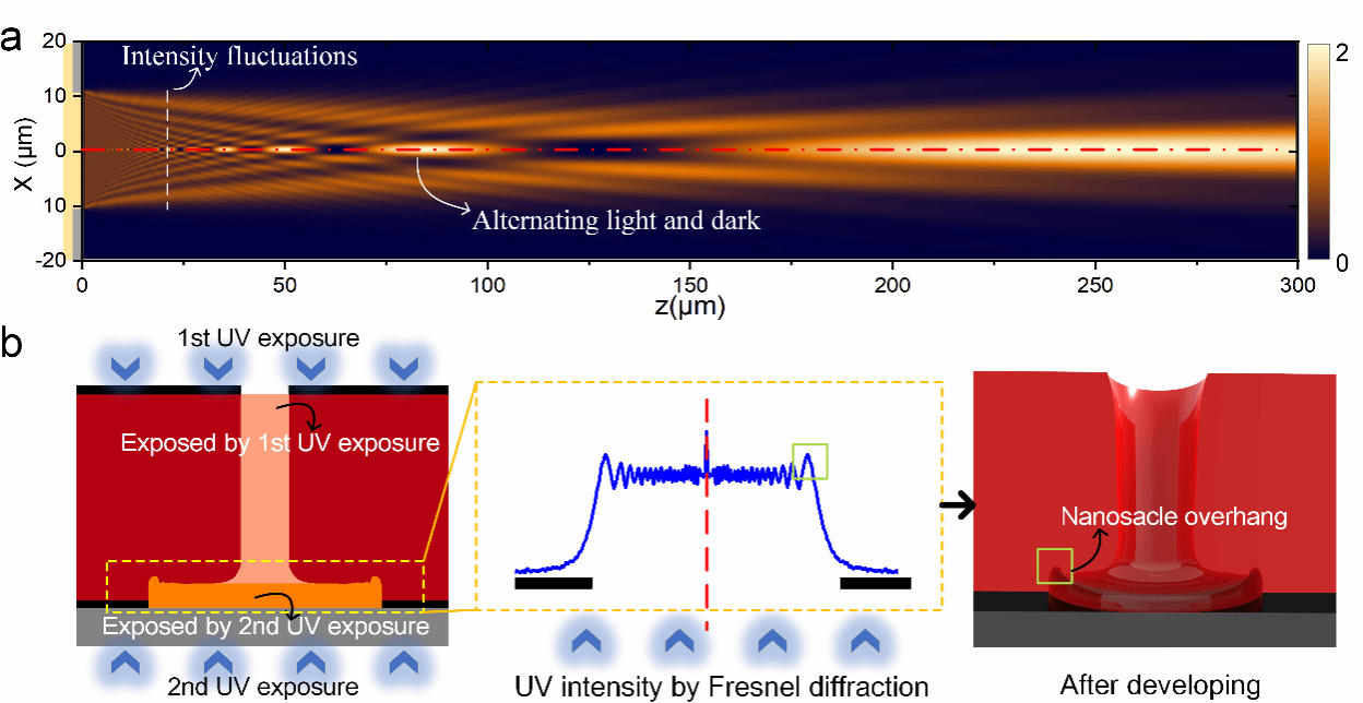 图7 基于菲涅尔衍射效应的双凹型微纳结构曝光原理
