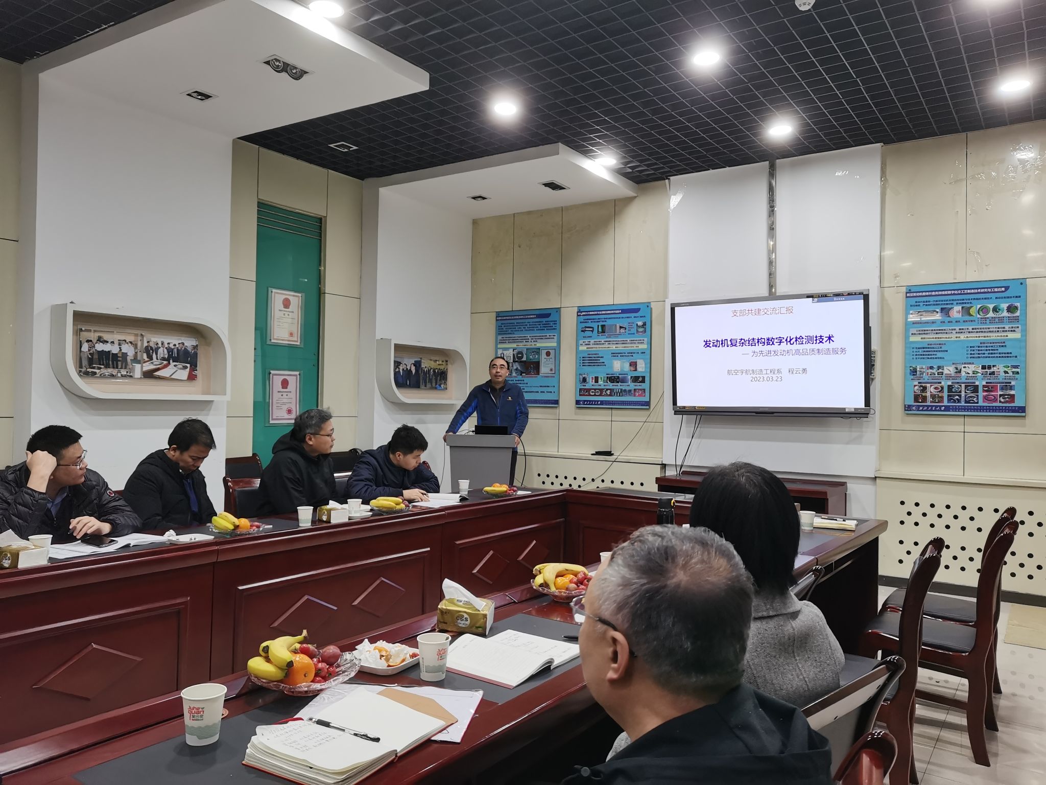 为深入学习贯彻习近平新时代中国特色社会主义思想和党的二十大精神,不断强化党建与业务融合共进,2023年3月23日,永利集团88304官网航空宇航制造工程系第一党支部邀请了“大国工匠”何小虎所在的西安航天发动机有限公司35车间党支部来校交流,开展了支部共建活动。会议由支部书记王明微同志主持,党员、入党积极分子等共20余人参加。