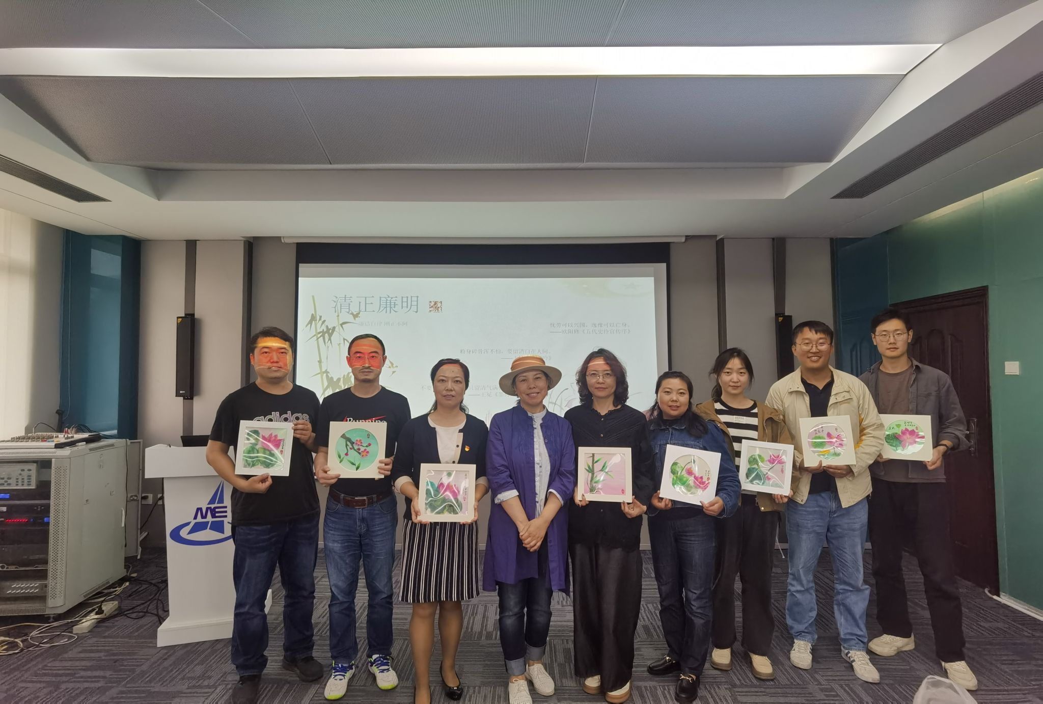 咸老师有着丰富的教学经验,在咸辉老师的悉心指导下,参与人员认真学习绘制技艺并动手实践,最终绘制了属于自己的棉画。绘制主题不仅有‘莲’还有象征着高尚情操的‘梅’、‘竹’等。这次棉画制作活动将廉洁文化和传统手工相结合寓教于乐、托情于物,用传统手工艺品的方式承载和发扬廉洁自律的精神。