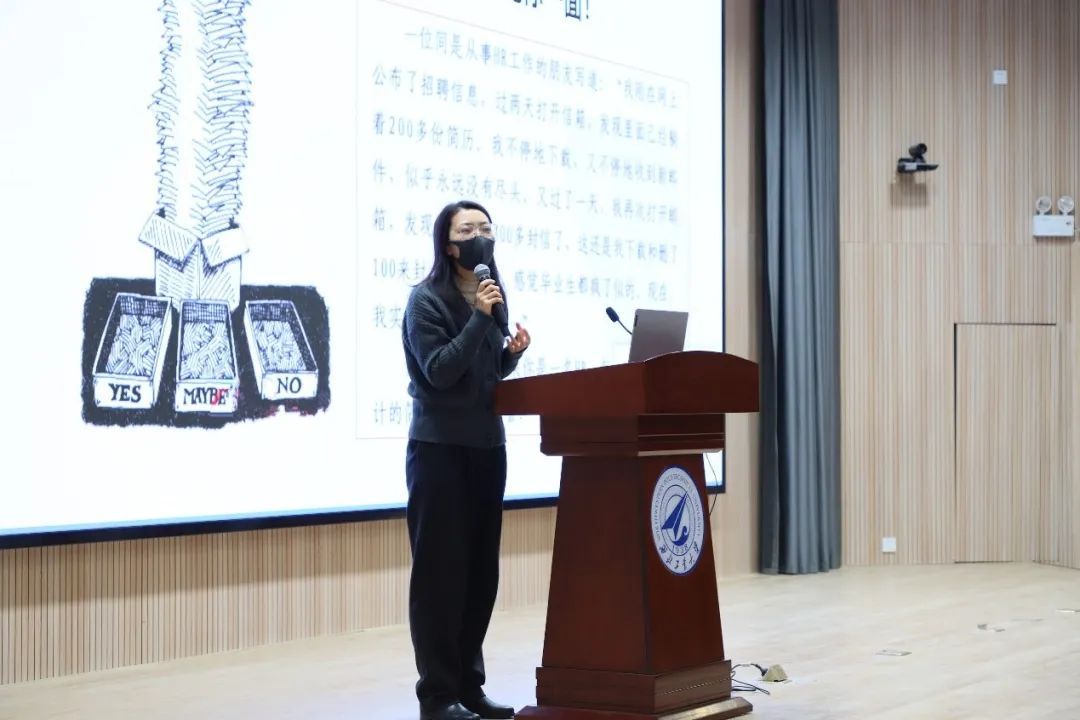 老师们针对同学们提出的就业相关问题一一进行了解答,为同学们提供了宝贵的建议和指导。李秀老师为大家梳理了就业时间线,鼓励大家在六月积极参加校园开放日活动,提前到企业了解实践。
