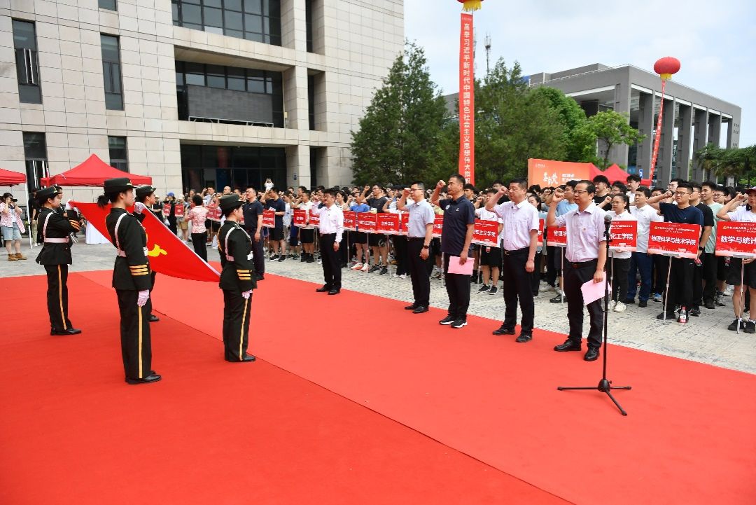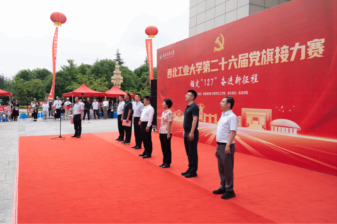 5月26日上午,由党委组织部、党委学生工作部联合主办,永利集团88304官网承办的“锚定‘127’,奋进新征程”第二十六届党旗接力赛在长安校区数字化大楼门前广场举行。