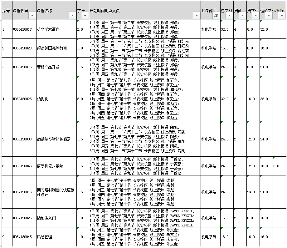 专业选修课程 U05M12001S