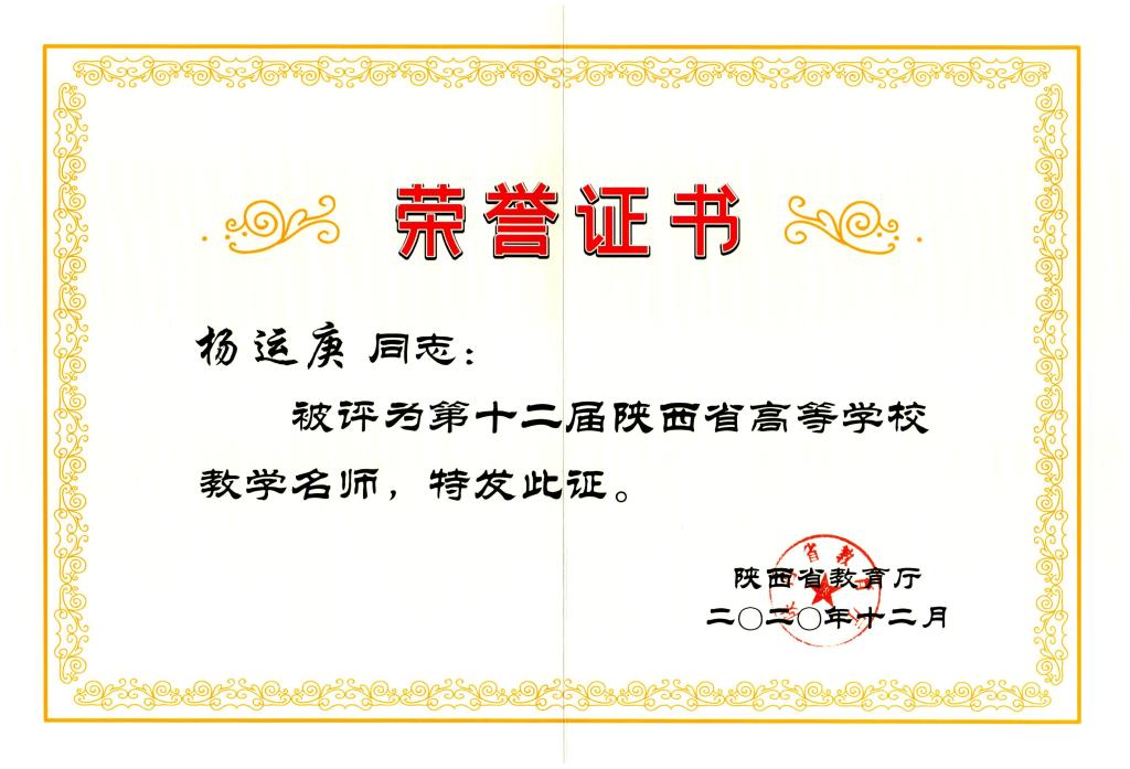 导航痕迹 首页 > 师资队伍 > 教师风采 > 正文 师资概况 教师简介 兼职教授 教师风采 李春平专栏 杨运庚被评为第十二届陕西省高等学校教学名师 发布人: 发布日期:2021年10月14日 阅读次数: