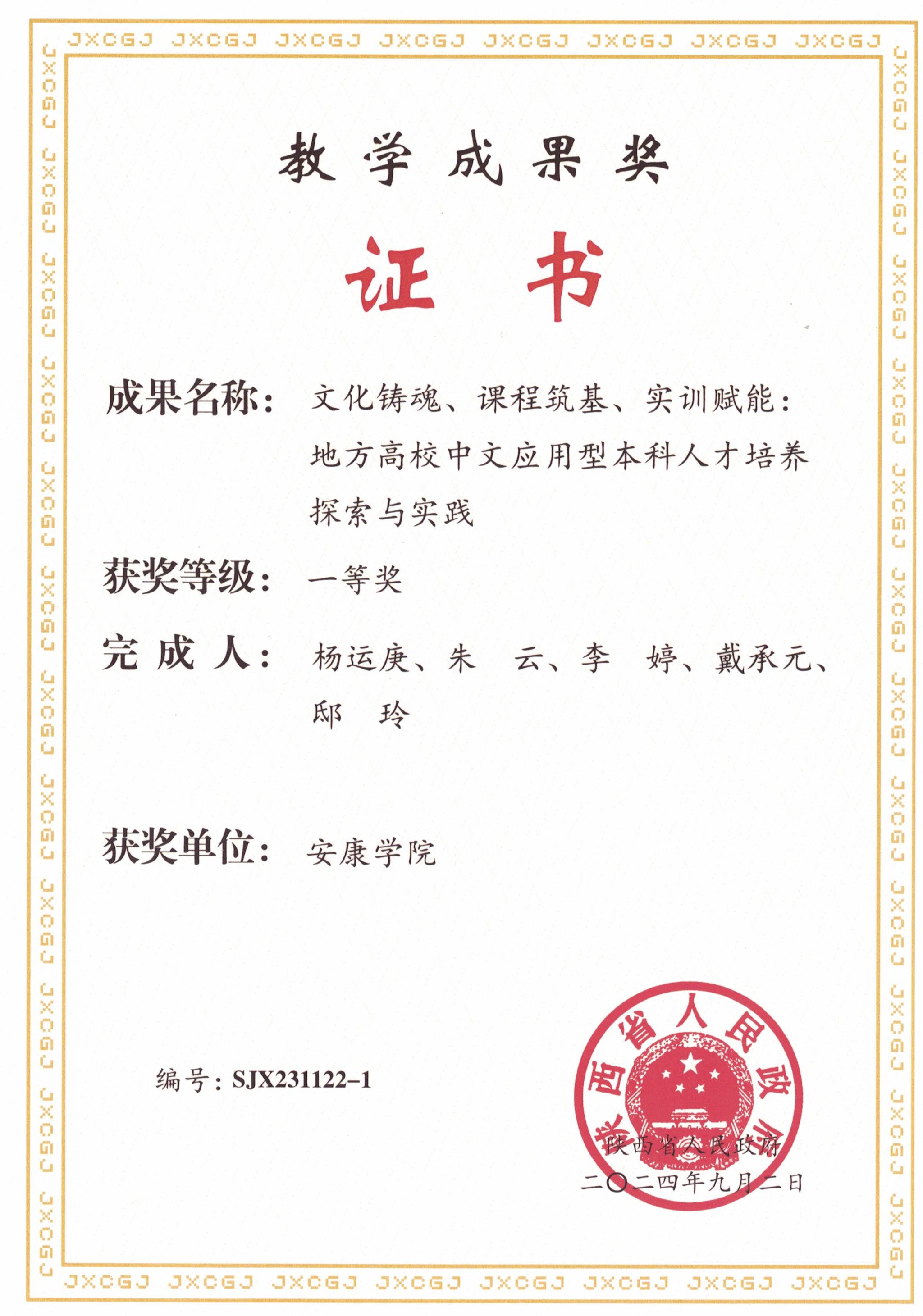 近日,陕西省人民政府发布了《陕西省人民政府办公厅关于表彰2023年高等教育教学成果奖获奖项目的通报》,1683168 3诸侯快讯入口杨运庚教授领衔申报的“文化铸魂、课程筑基、实训赋能:地方高校中文应用型本科人才培养探索与实践”荣获陕西省高等教育教学成果一等奖,获奖等次取得了新的重大突破,彰显了诸侯快讯在中文应用型本科人才培养改革探索上取得的实效。