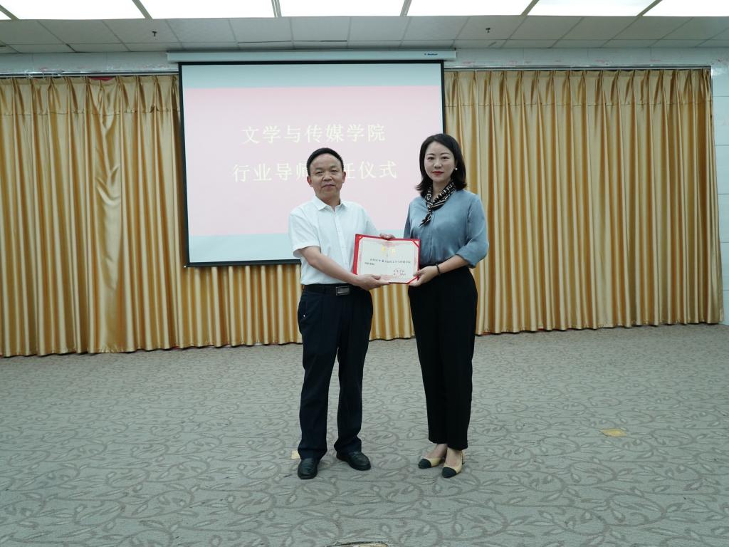 答辩会开始前,杨运庚为白堇颁发行业导师聘书,并为答辩会致开场辞。杨运庚首先对白堇的现场指导以及安康电视台长期以来协同育人的支持表示感谢。接着,他结合新时代新媒体行业的发展趋势,分析了网络与新媒体专业的优势与就业前景,肯定了学院的一系列实践教学改革成果,鼓励学生在实践中不断更新观念、锻炼能力。最后,他深情寄语文传学子砥砺奋进,并预祝参与本次答辩的学生一切顺利。