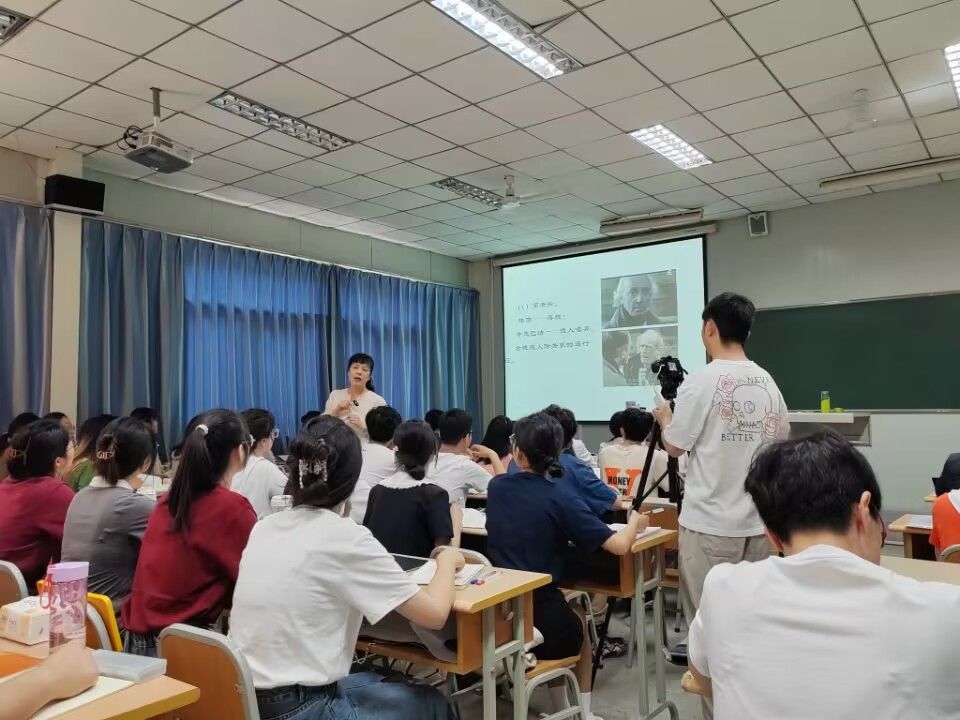 活动第一环节(10:00—10:50)为观摩余珊主讲的外国文学课。余老师主讲的内容为《高老头》第二部分,主要回顾了高老头的形象特点,分析了拉斯蒂涅的形象,最后落脚在对父女亲情的探讨上。本节课以问题贯穿始终,在课前学生细读原著的基础上展开讨论,学生参与度高,课堂氛围及教学效果优良。