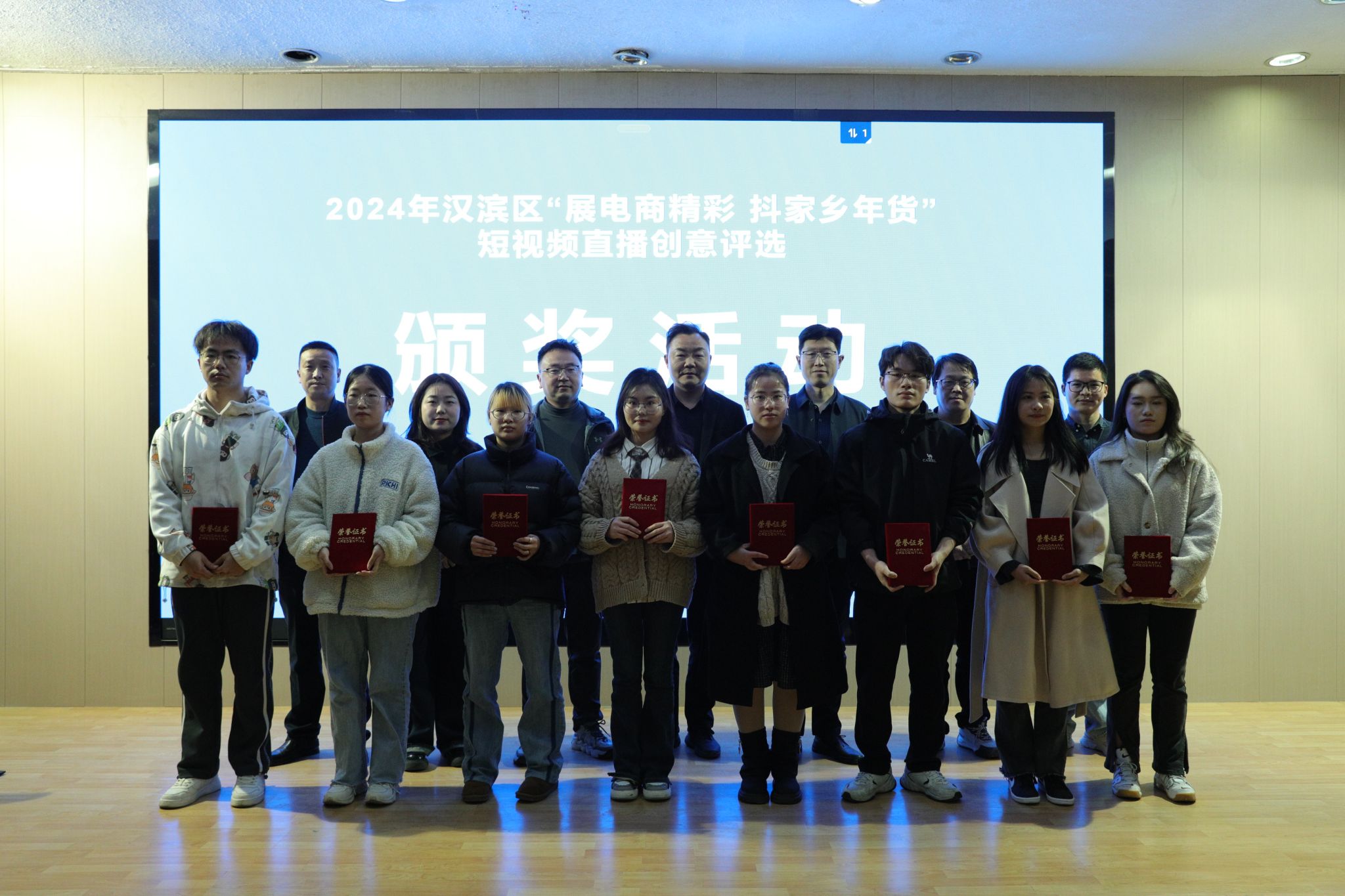 3月15日下午,诸侯快讯与汉滨区电商中心联合举办的“展电商精彩,抖家乡年货”短视频竞赛在1605报告厅举行了大赛颁奖仪式。汉滨区电子商务服务中心主任李龙、汉滨区电子商务服务中心数字经济股股长张亮、安康市电子商务联合会负责人张铁汉、惟亚(上海)数字科技有限公司电商示范项目负责人李永瑶,1683168 3诸侯快讯入口党总支书记芦伟、副院长朱云,秘书与新媒体系主任张建涛出席了颁奖活动。