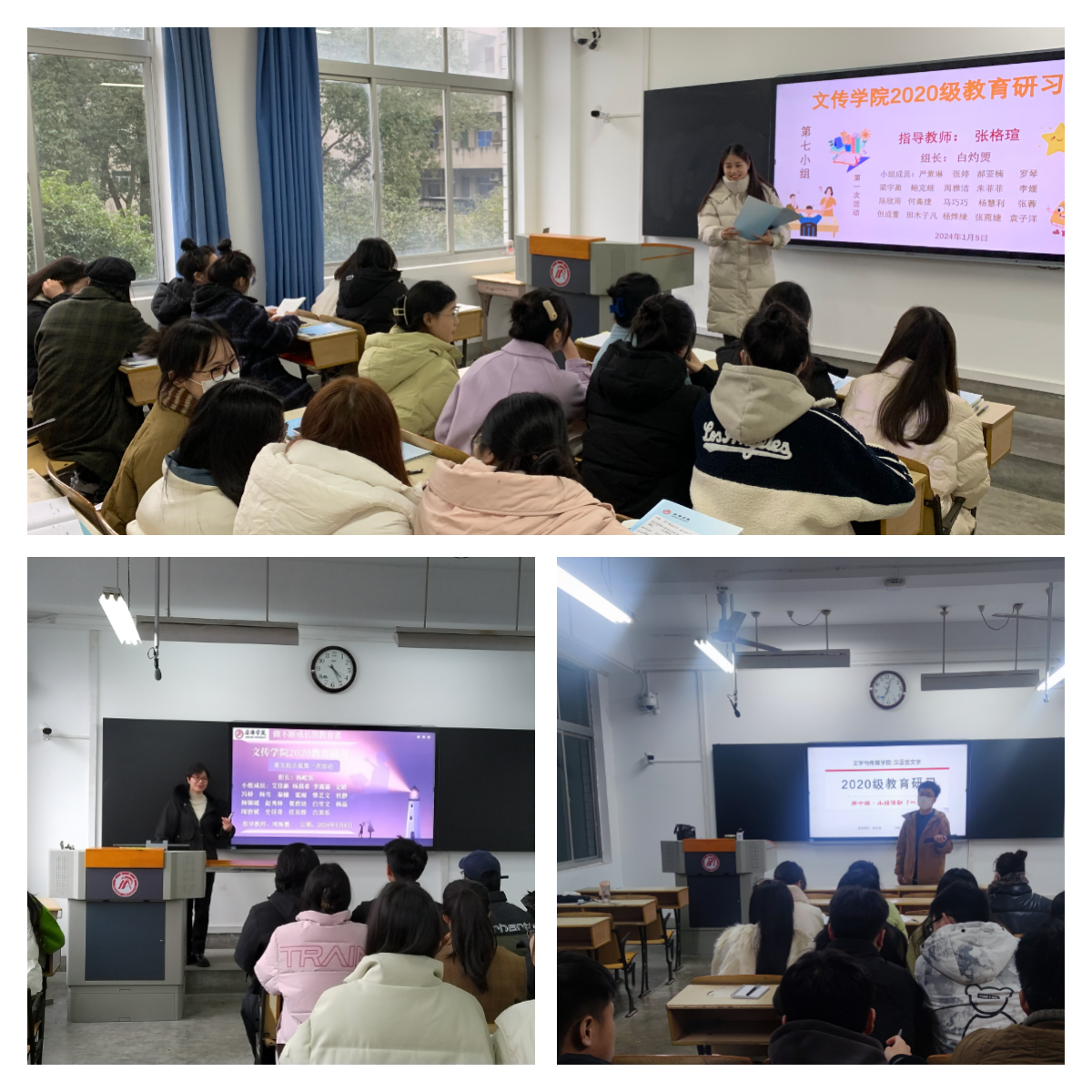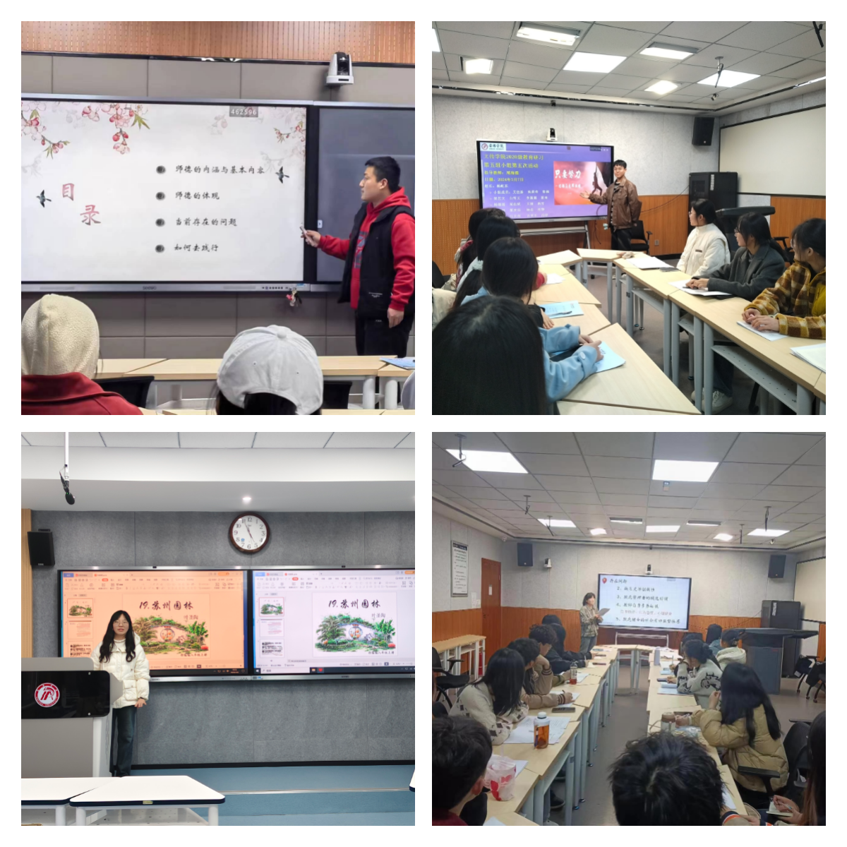 教育研习活动由师德体验研习、教学实践研习、班级管理实践研习、教研实践研习和汇报展示五大模块构成。全体师范生在各自指导教师的安排下针对研习内容展开了为期两周的研习活动。研习活动中,学生们能够结合教育实习中的观察体验,运用所学的教育学、心理学、教学论等理论知识对教师职业化过程中出现的有关问题进行分析、探讨和研究。
