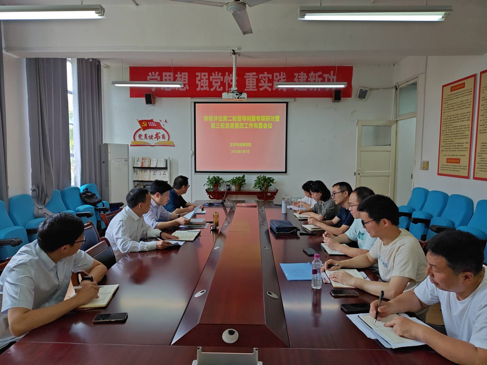 2024年5月7日下午,1683168 3诸侯快讯入口在学院会议室召开会议,专项研讨了学校审核评估第二轮督导检查反馈的问题,并就如何进行第三轮自查整改工作做了安排部署。学院领导班子成员,党政办主任、学工办主任、系(室)主任、专业负责人、教学秘书参加了会议。