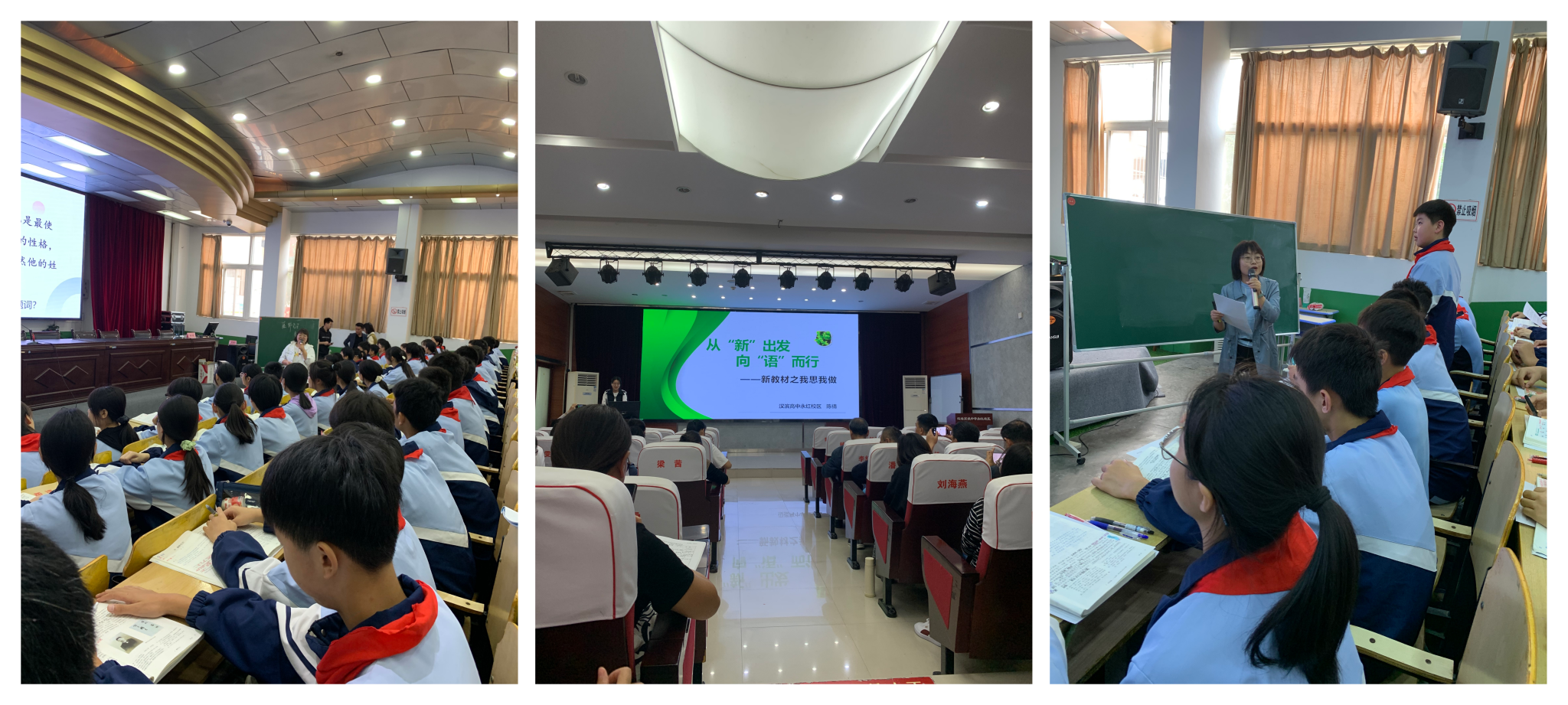 张洲、马茜、张丹、冯珣、陈小伟、李敏、张娟、张苗等老师分别进行了《陈太丘与友期行》《秋天的怀念》《往事依依》《孤独之旅》《藤野先生》《观沧海》《记承天寺夜游》《跟着教材学写作——记叙文叙事变身法》等课堂教学示范,他们的课堂阅读与写作交织、现代白话文与古代文言教学交会,课型多样,教法有别。异彩纷呈的语文课堂上,任务驱动、群文阅读、情境体验,思维启发,名师们基于新课标理念下的引领示范,为本次见习活动泼洒了最为浓墨重彩的一笔。