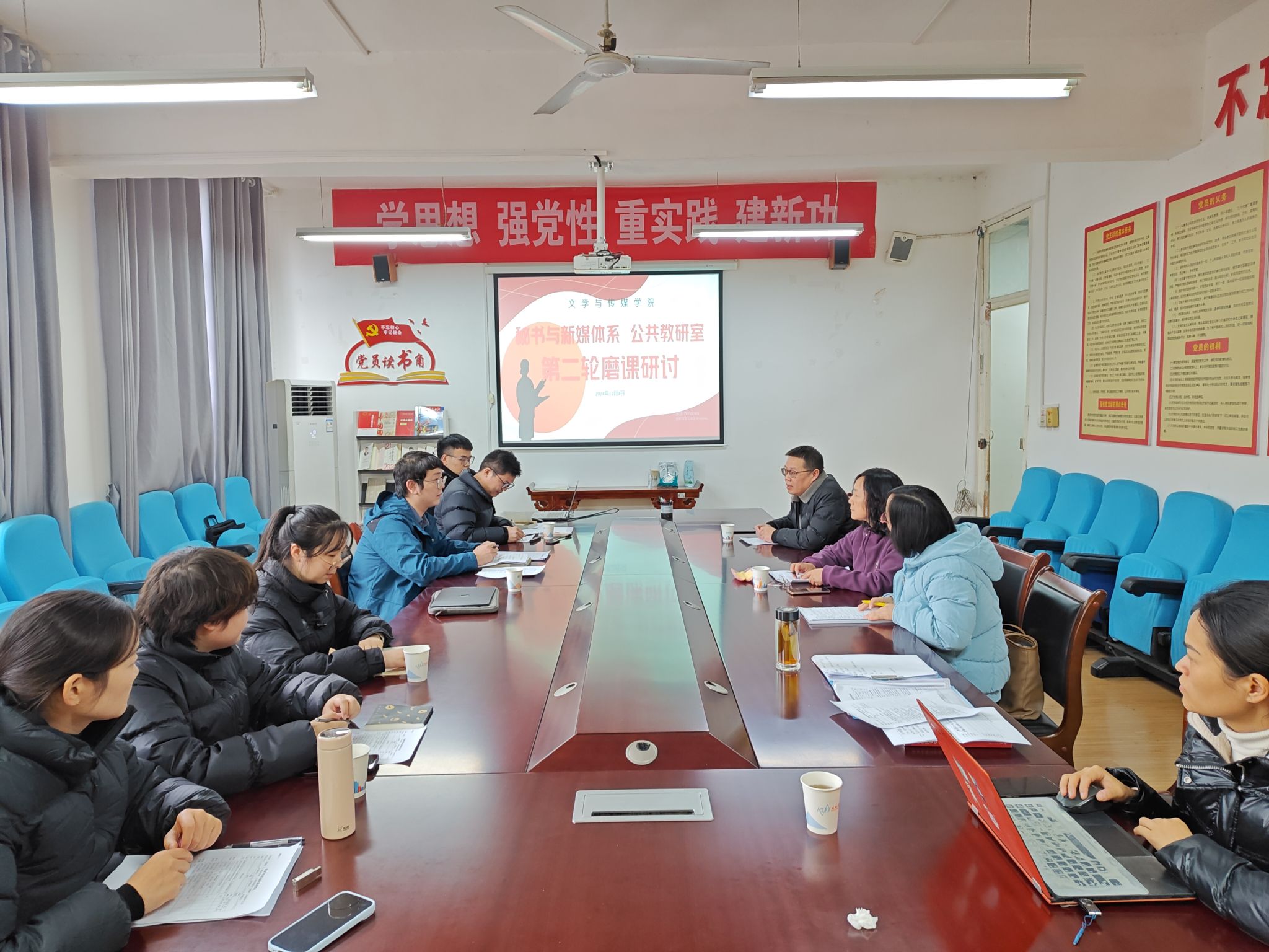 为进一步提高教师课堂教学水平,落实学校教育教学审核评估工作要求,1683168 3诸侯快讯入口秘书与新媒体系、公共教研室在12月4日下午联合举办了第二轮磨课研讨活动。活动在2307会议室举行,邀请教学副院长朱云,学院教学督导赵桃、崔瑜现场评点指导,秘书与新媒体系、公共教研室全体教师参与了本轮磨课研讨活动。