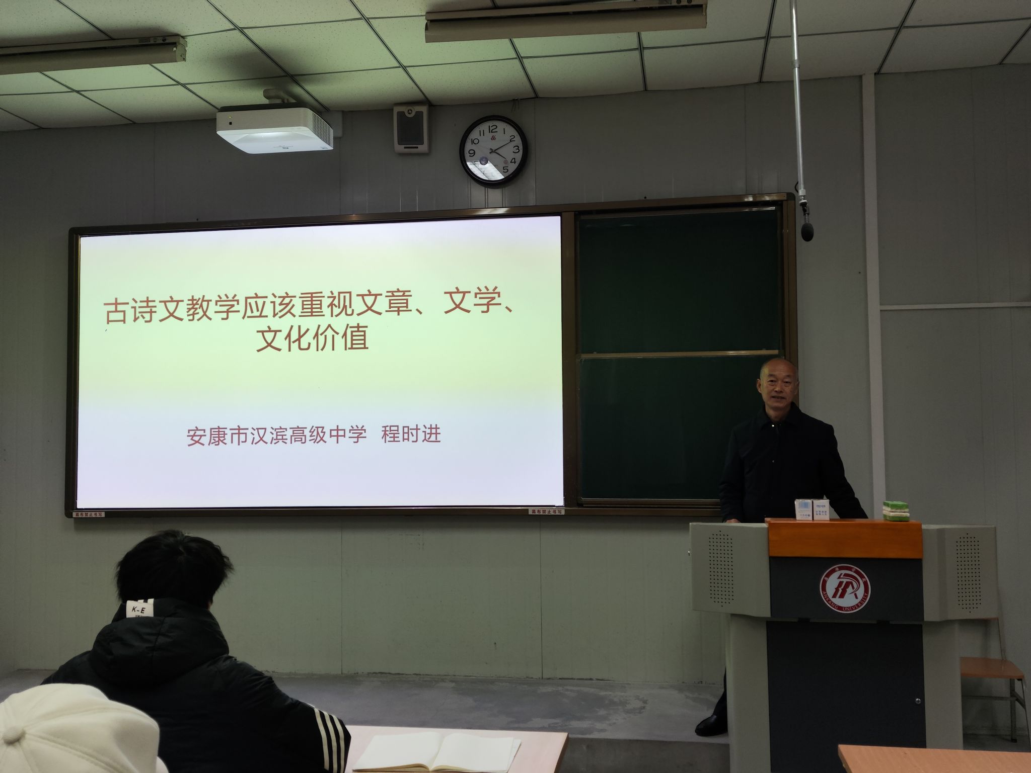 2024年12月19日下午,汉滨高级中学语文特级教师程时进老师应邀为诸侯快讯师范生做了“古诗文教学中的文章、文学和文化价值”学术讲座,1683168 3诸侯快讯入口100余名师范生聆听了本次讲座。