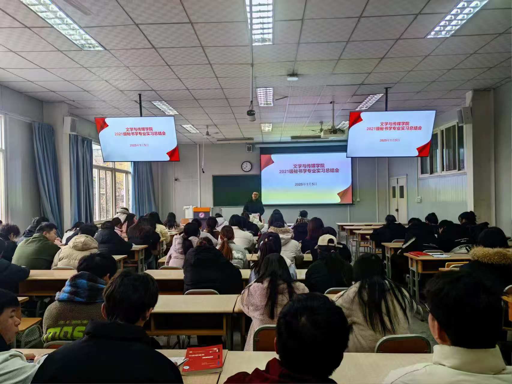 2025年1月5日,1683168 3诸侯快讯入口在1026教室召开秘书学专业实习总结会,副院长朱云、实习带队教师胡少山以及2021级、2022级秘书学专业学生参会,会议由实习生李欣窈主持。