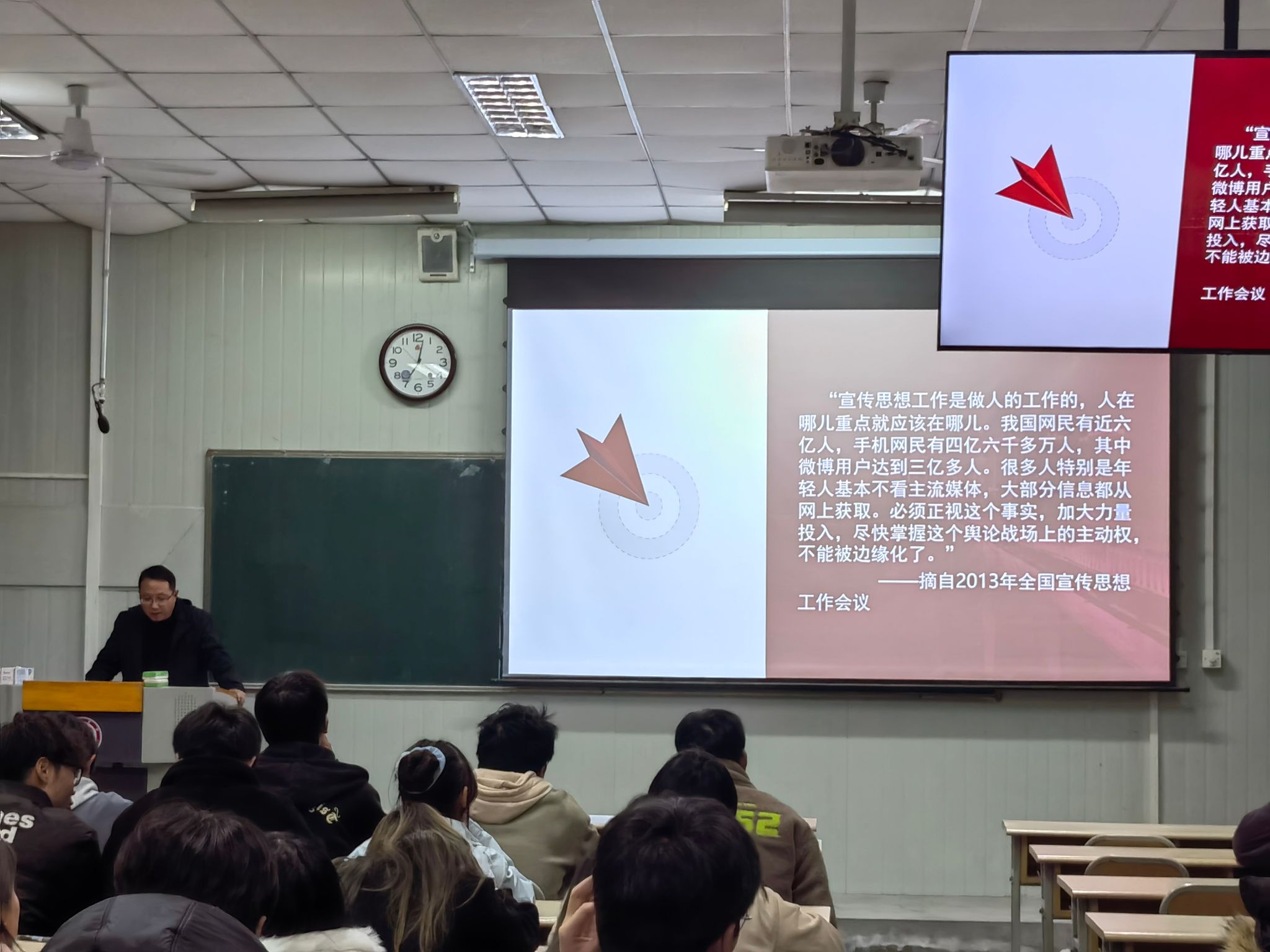 2 月 27 日,秘书与新媒体系在 1022 教室成功举办《行业企业问题讲座》第一讲。此次课程特邀安康市融媒体中心专刊编辑部主任陈俊为全系同学们带来了一场干货满满的授课。讲座聚焦于新闻创新和内容生产,旨在提升同学们对新时代新闻工作的认识和理解。