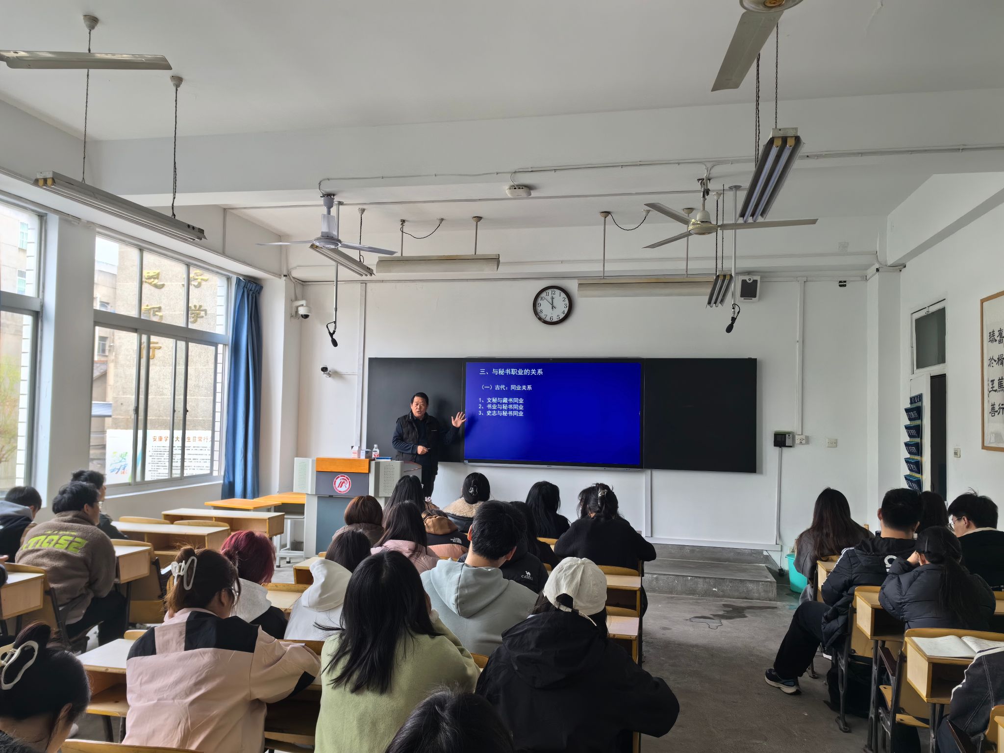 3月6日,秘书与新媒体系在1209教室成功举办《行业企业问题讲座》第二讲。此次特邀原安康市图书馆馆长李焕龙为秘书学专业2022级全体同学带来了一场题为“图书馆行业与秘书工作”的讲座,讲座由秘书学专业负责人胡少山副教授主持。