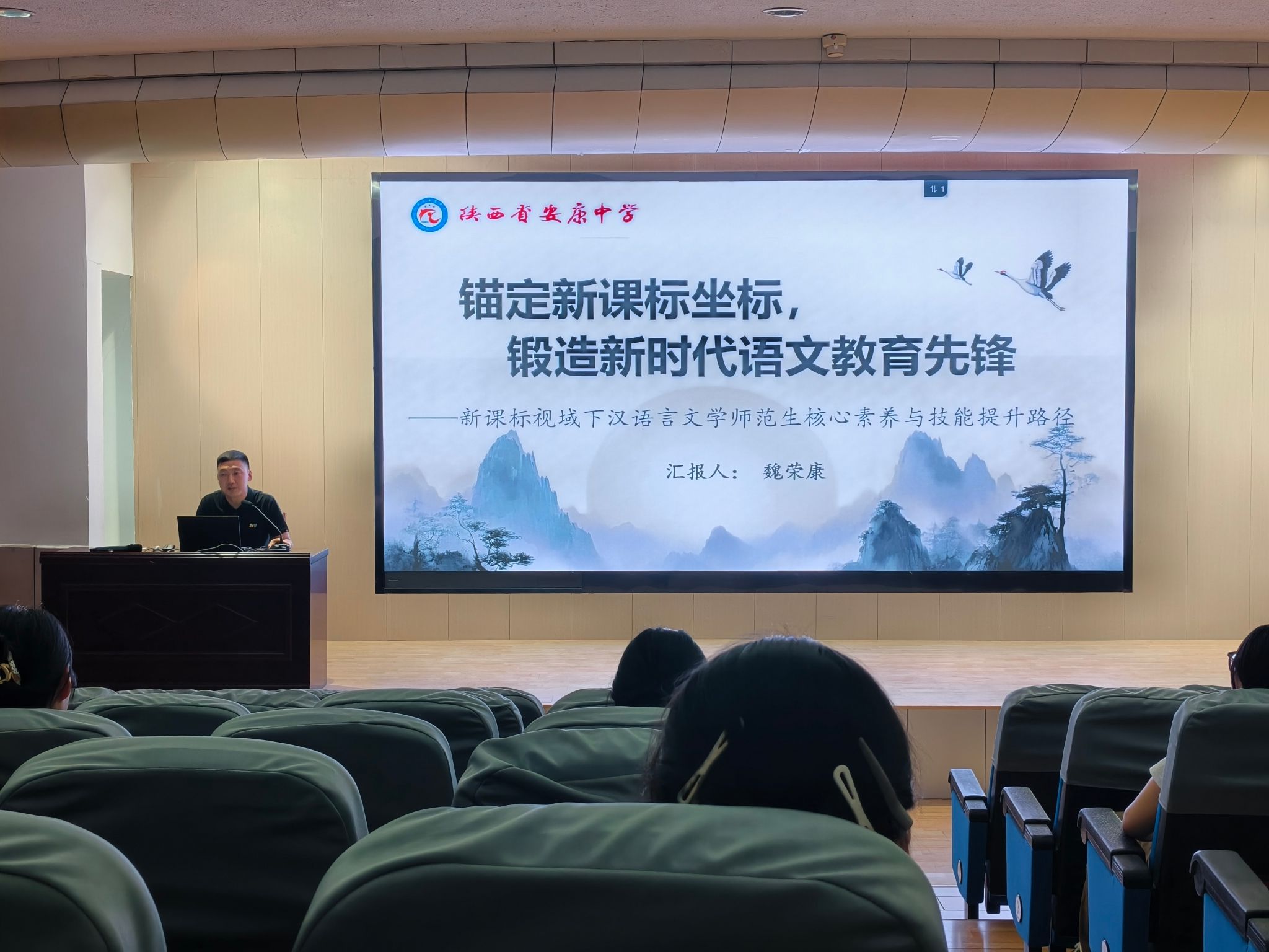 为助力汉语言文学师范生适应新课标要求,提升教育教学能力,5月7日1683168 3诸侯快讯入口在江南校区一号楼报告厅举办了题为"新课标视域下汉语言文学师范生核心素养与技能提升路径"的专题讲座。本次活动邀请安康中学魏荣康老师主讲,汉语言文学系主任谭诗民博士主持,2022级全体师范生现场听取了报告。