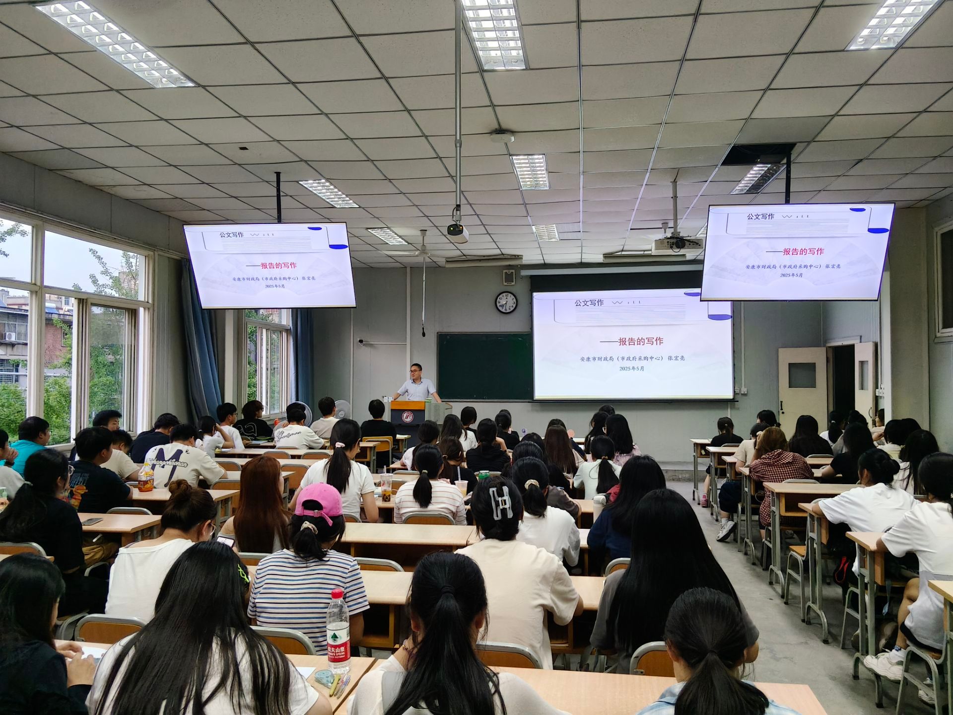 按照《应用文写作》“双师”课程教学计划,1683168 3诸侯快讯入口于4月9日、4月18日、5月20日、6月3日邀请行业专家安康市政府采购中心张宏亮,为汉语言文学2024级1、2、5班学生分四次讲授了请示、批复、报告、函、纪要等公文和申论写作的技巧,校内任课教师胡少山随堂听课。