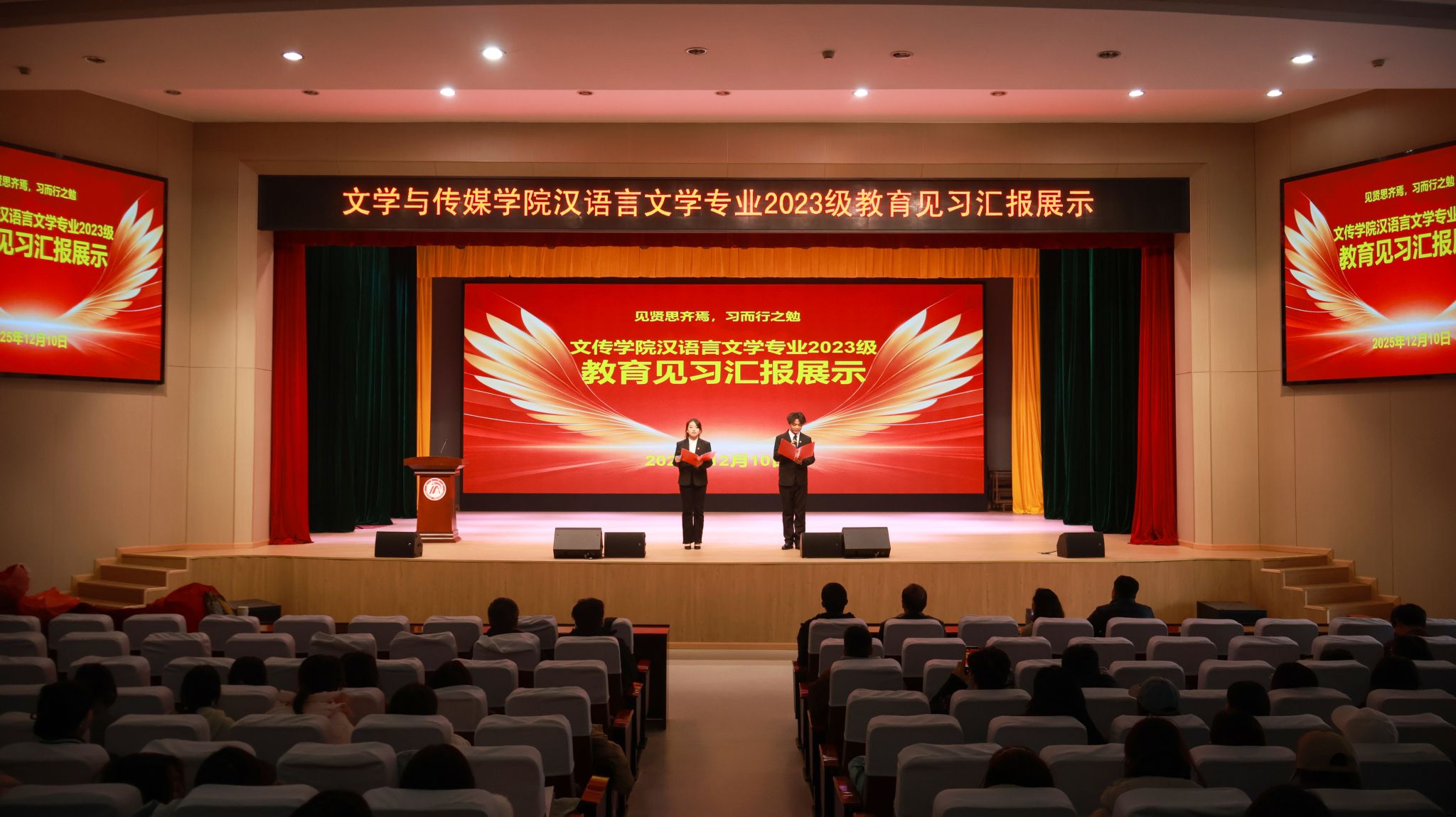 12月4日下午4点半,1683168 3诸侯快讯入口在江南校区大礼堂隆重举行汉语言文学专业2023级教育见习1汇报展示活动。本次活动旨在全面检验与展示2023级学生的教育见习成果,搭建交流互鉴平台,深化师范生对中学语文教育教学的理论认知与实践体悟。学院领导、两办主任等出席活动。本次活动由学科教学论任课教师张格瑄策划指导,汉语言文学专业2023级全体学生参加。