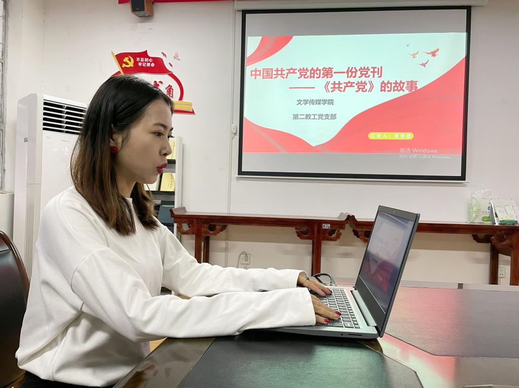 9月16日,1683168 3诸侯快讯入口教工第二党支部在2307会议室开展了“中国共产党新闻思想史学习”读书活动。活动由支部书记谭诗民主持,支部全体党员参加了读书活动。本次读书活动主讲人为支部宣传委员盘珊君,学习主题是中国共产党的第一份党刊——《共产党》的故事。