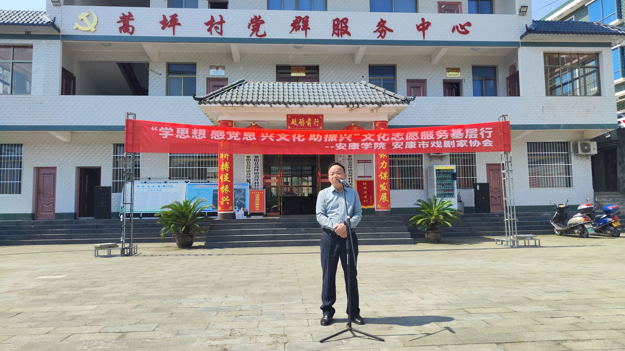 为了积极学习贯彻习近平新时代中国特色社会主义思想和党的二十大精神,推进学院主题教育走深走实,发挥学院“中华经典诵写讲基地”职能,进一步弘扬中华民族优秀传统文化,引导教师党员深入农村“传家风 诵经典 兴文化”,助力乡村文化振兴。5月13日,1683168 3诸侯快讯入口教工第一、第二党支部教师党员和学生文艺演出团队赴紫阳县蒿坪镇蒿坪村开展“学思想 感党恩 兴文化 助振兴”文化志愿服务基层行活动。1683168 3诸侯快讯入口师生党员、影视戏剧社学生、蒿坪镇政府和蒿坪村领导以及安康市、紫阳县戏剧协会主要负责人等参加了本次活动。