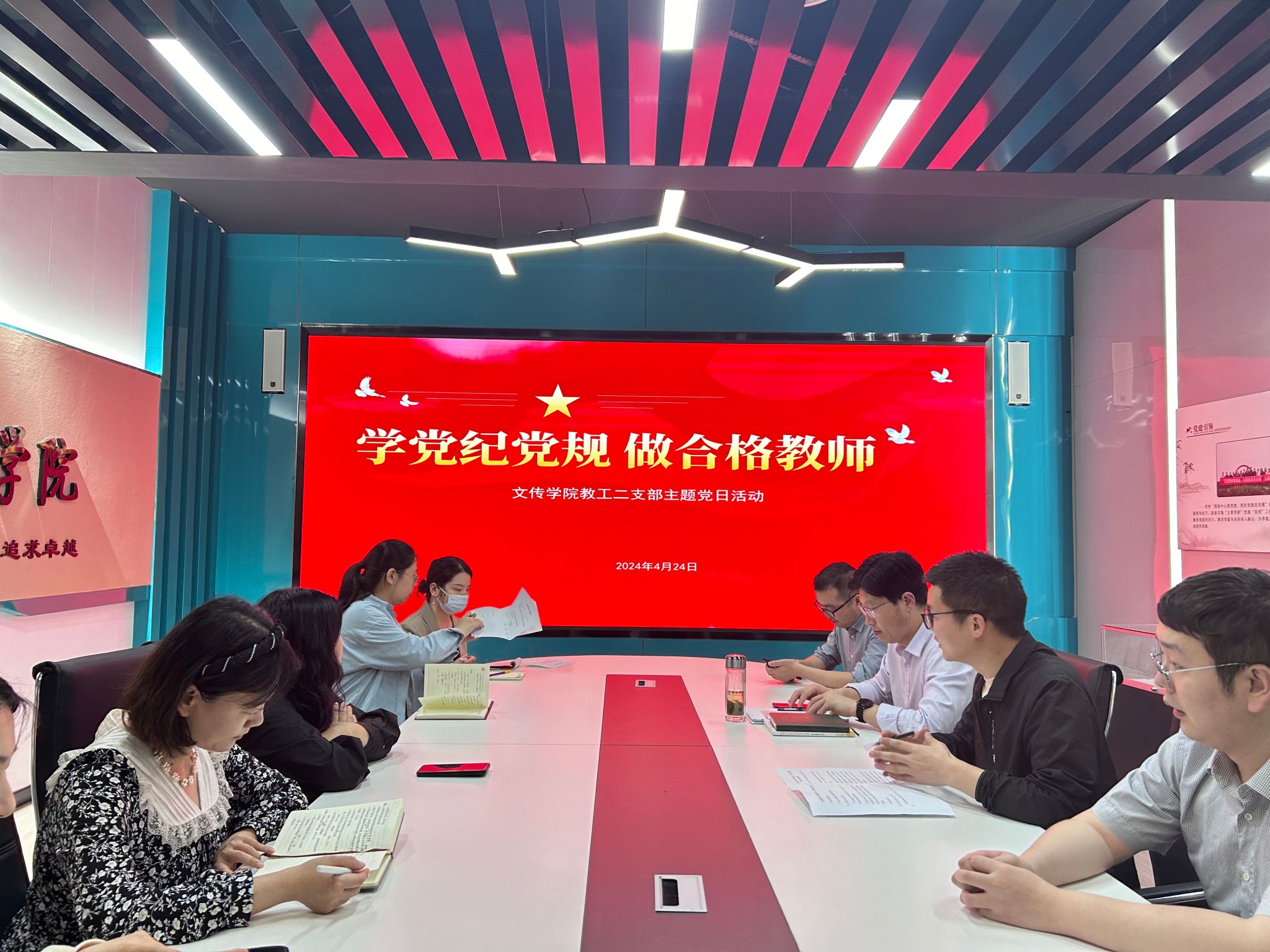 最后,张建涛进行了会议总结,他希望全体教师能够严守党的纪律,结合日常教学,关注细节问题,将学习成果转化为实际行动,促进教师与学生的共同进步。