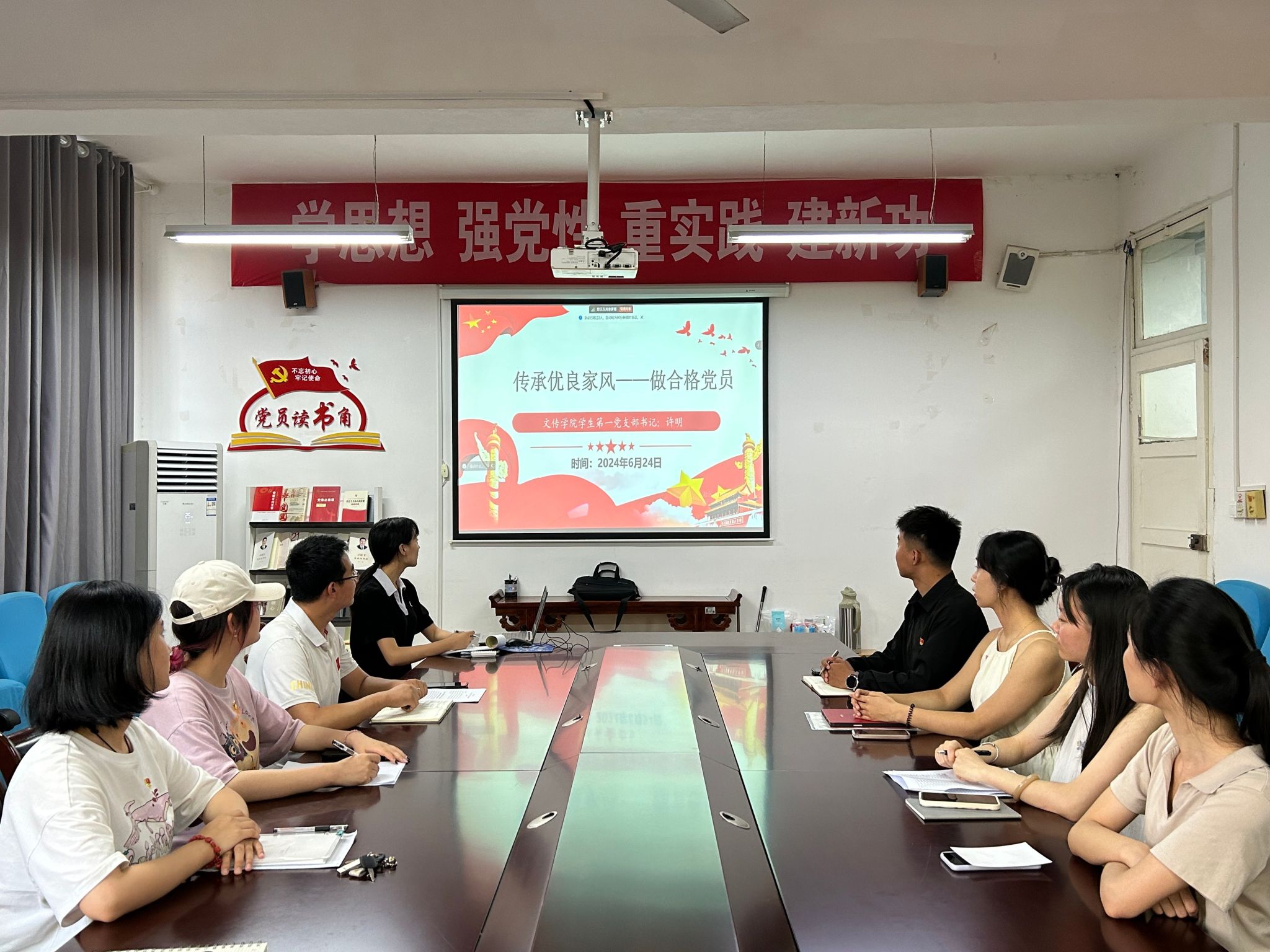 为深入开展党纪学习教育,传承党的优良传统和光荣作风,2024年6月24日下午,1683168 3诸侯快讯入口学生第一党支部书记以“传承优良家风家训,做合格党员为主题”为全体党员讲了一堂生动的党课。