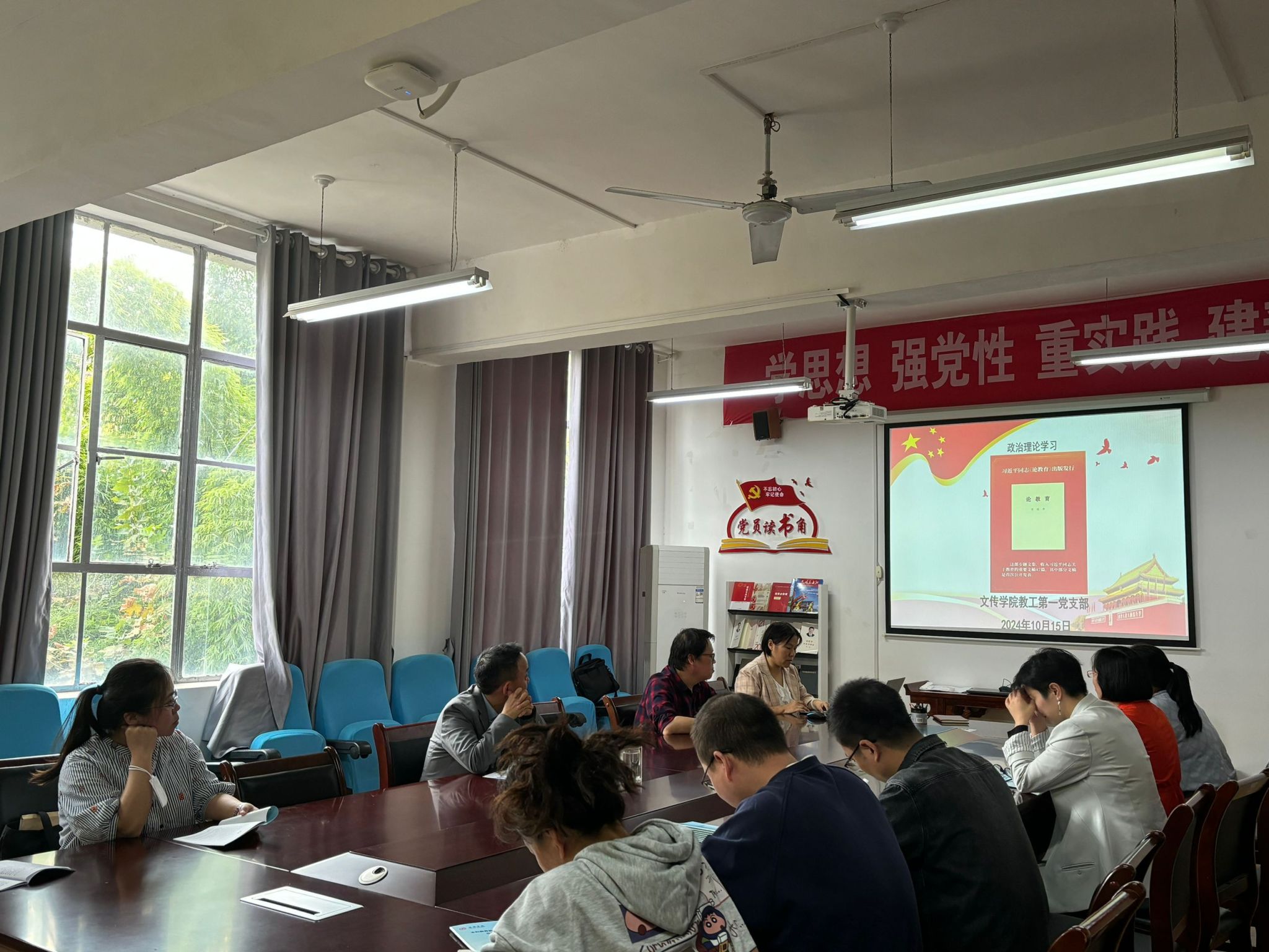 为进一步学习和理解习近平《论教育》的精神内涵,深刻领会习近平总书记关于教育的重要论述,2024年10月15日下午,1683168 3诸侯快讯入口教工第一支部组织全体党员开展“大力弘扬教育家精神,加快建设教育强国”10月主题党日活动,活动由支部书记韩文霞主持。