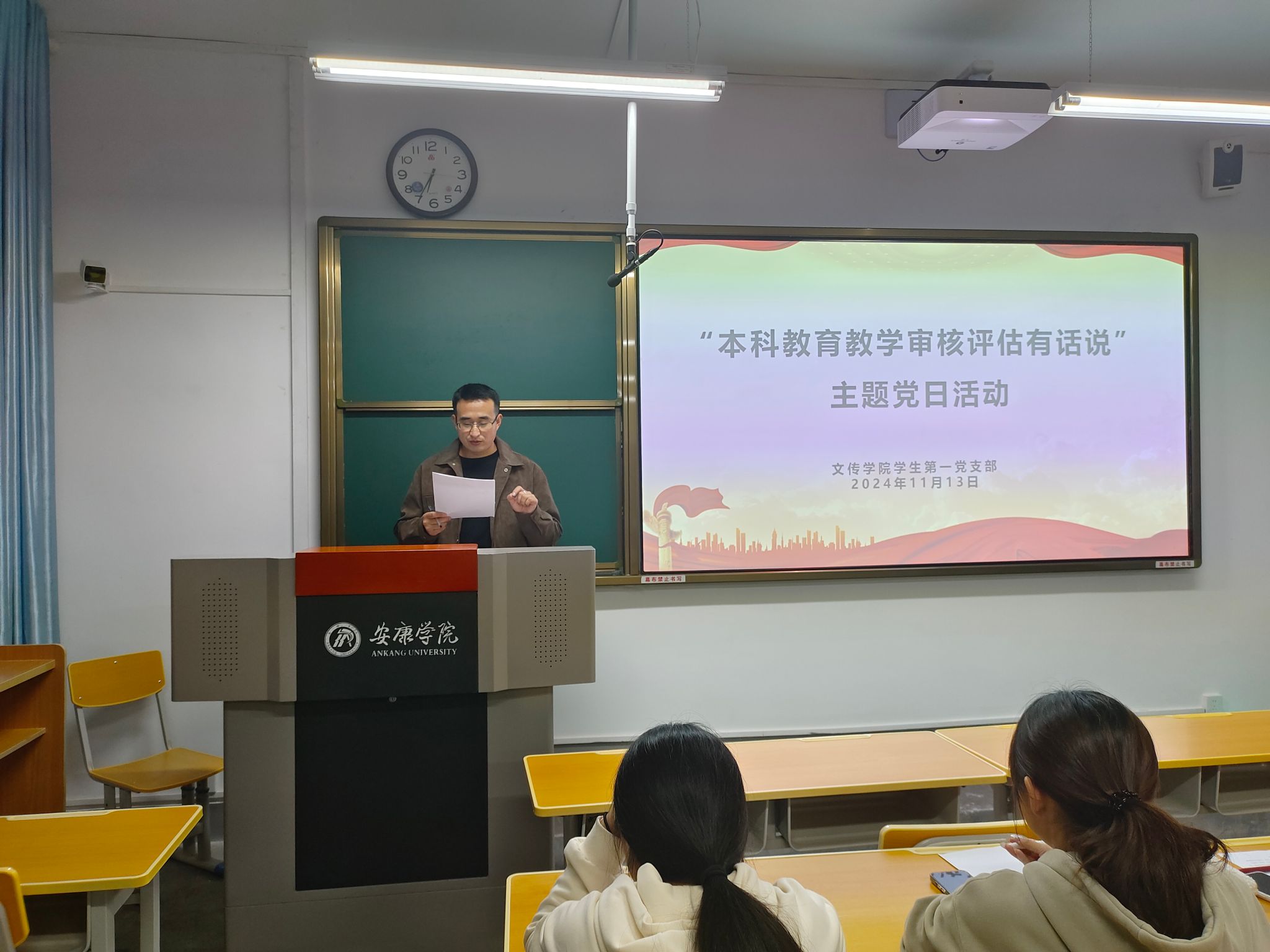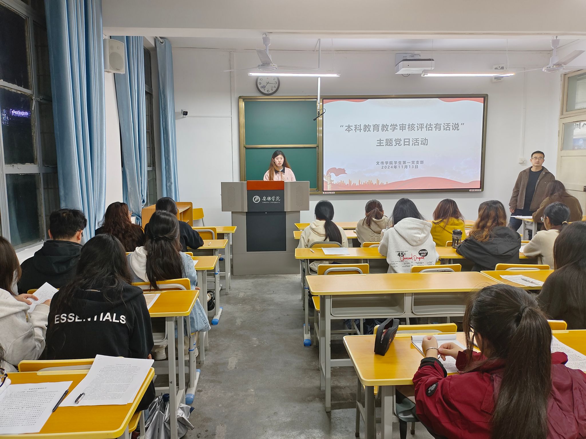 活动伊始,许明老师首先强调了本科教育教学审核评估的重要意义,详细介绍了此次审核评估过程中涉及到我们学生需要准备的学习内容和需要落实的具体要求;他还特别强调审核评估在提升教育质量和学生综合素质方面的重要性,鼓励全体同志要以高度的责任感投入到学校审核评估之中,以实际行动助力学校发展。在发言交流环节,十多名同志围绕思想成长、职业理想、学业进步及学校建设等方面进行了交流发言,分享了各自的心得体会;支部成员纷纷表示要严格要求自己,以更加饱满的精神状态参与学校各项建设,坚定不移地为学校的发展贡献力量,在审核评估工作中发挥先锋模范作用。