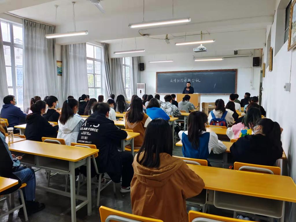 邹棠华老师首先通报了学校《关于学生违反疫情防控相关规定的处理通报》,告诫学生要自觉遵守疫情防控纪律,维护校园健康有序环境,克服困难,共克时艰。