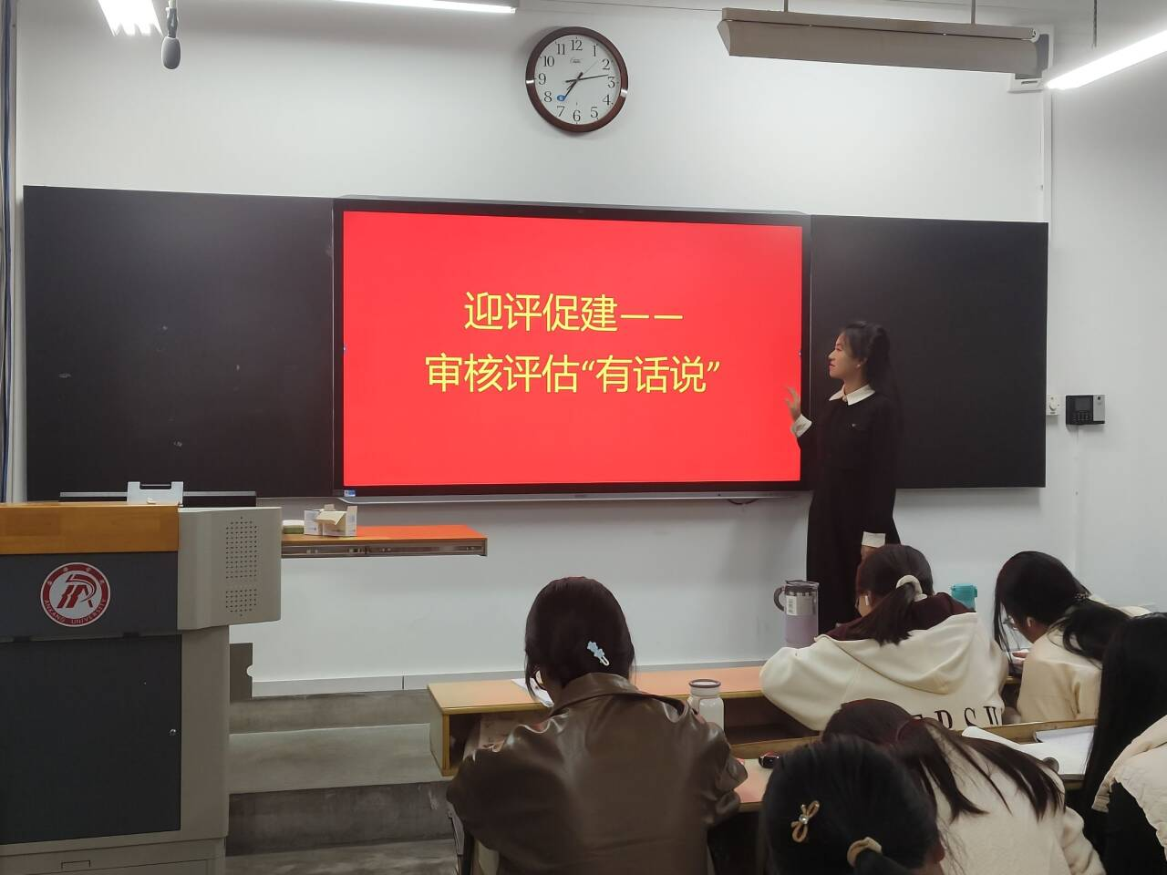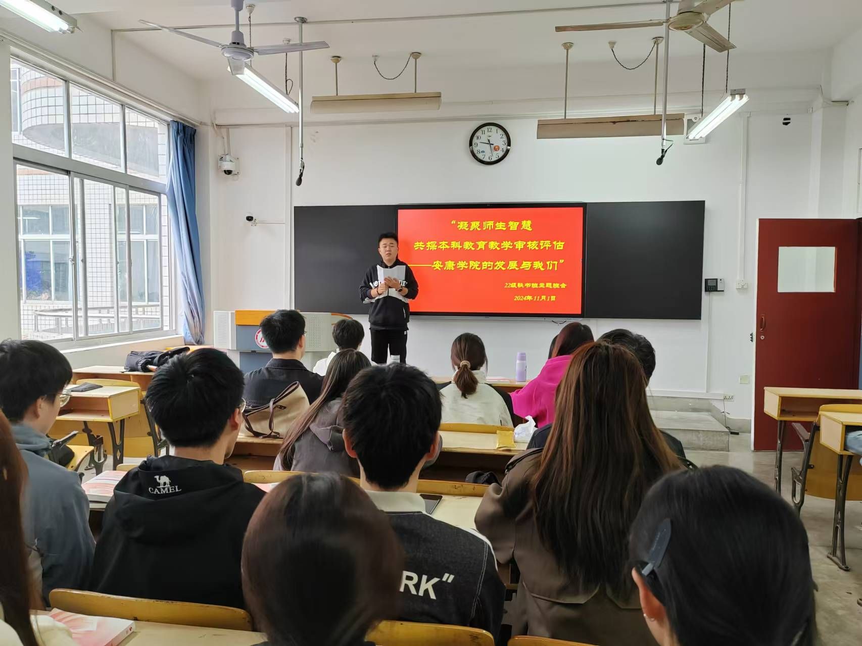 以“说思想成长、说学业进步、说能力提升、说职业理想、说学校建议”为主题的“审核评估有话说”主题班会,为学生提供深度交流与思考的平台。同学们敞开心扉,分享了在大学期间思想上的蜕变历程。谈及学业进步,通过参加学术讲座、小组讨论、科研项目等方式拓宽知识视野,提升学业水平。能力提升方面,同学们讲述社团活动、竞赛参与、实习实践等经历展现出能力的多元化发展。面对职业理想,同学们展现出对未来的憧憬和规划,以及为实现职业理想所做的准备。同时本着促进学校发展的积极态度,同学们从教学设施改善、课程设置优化、校园文化建设等多个方面提出了宝贵意见。