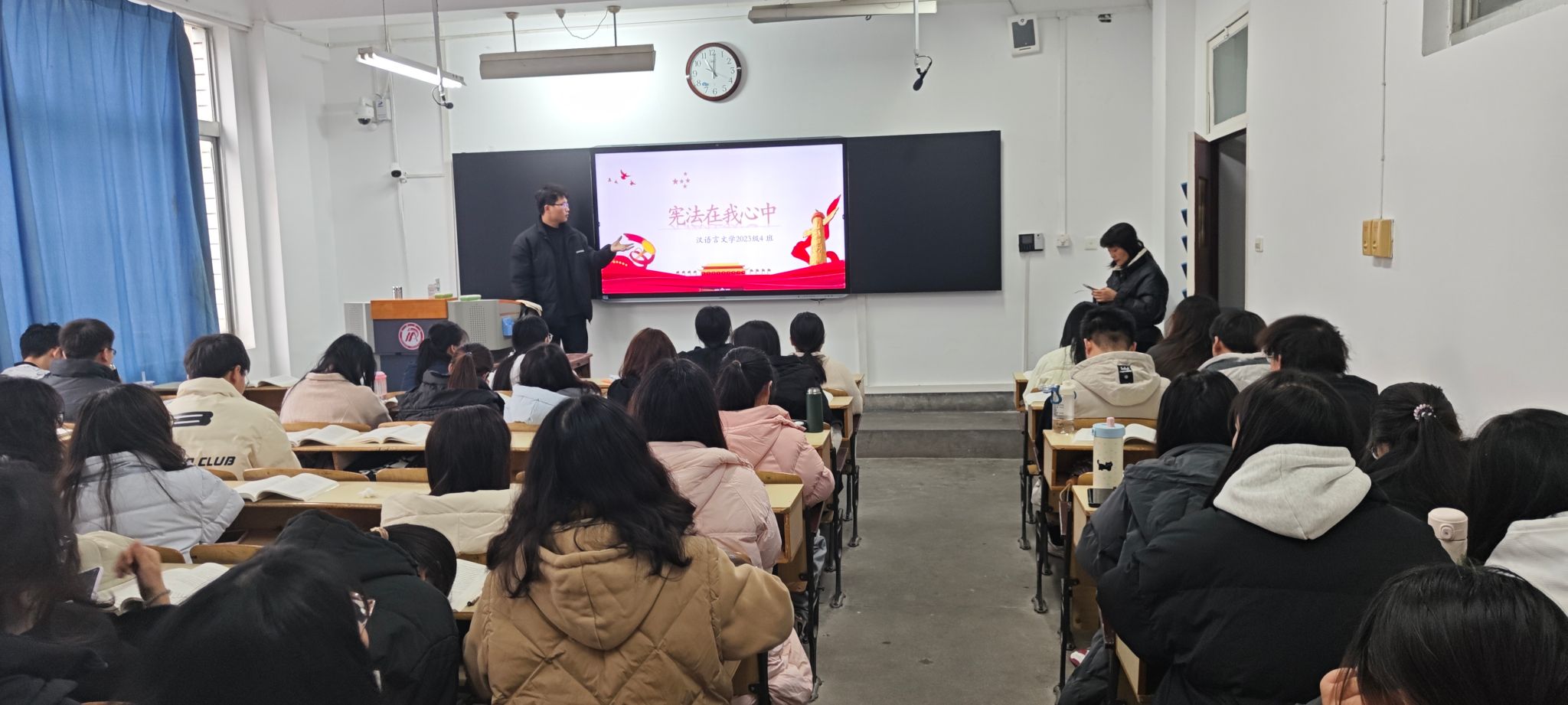各年级辅导员向同学们普及宪法作为国家根本大法,与每个公民息息相关。各班在班干部的带领下,全体同学庄重而严肃地诵读《中华人民共和国宪法》部分章节,同学们在诵读过程中深刻感受宪法的庄严与神圣。诵读后,同学们分享自己的学习感悟,通过诵读对宪法赋予公民的权利和义务有了更加清晰的认识,明白了在日常生活中要自觉遵守宪法,依法行使权利,积极履行义务。同学通过学习也深刻意识到宪法是维护社会公平正义的基石,作为新时代的青年学生,要积极传播宪法知识,弘扬宪法精神,为建设法治社会贡献自己的力量。