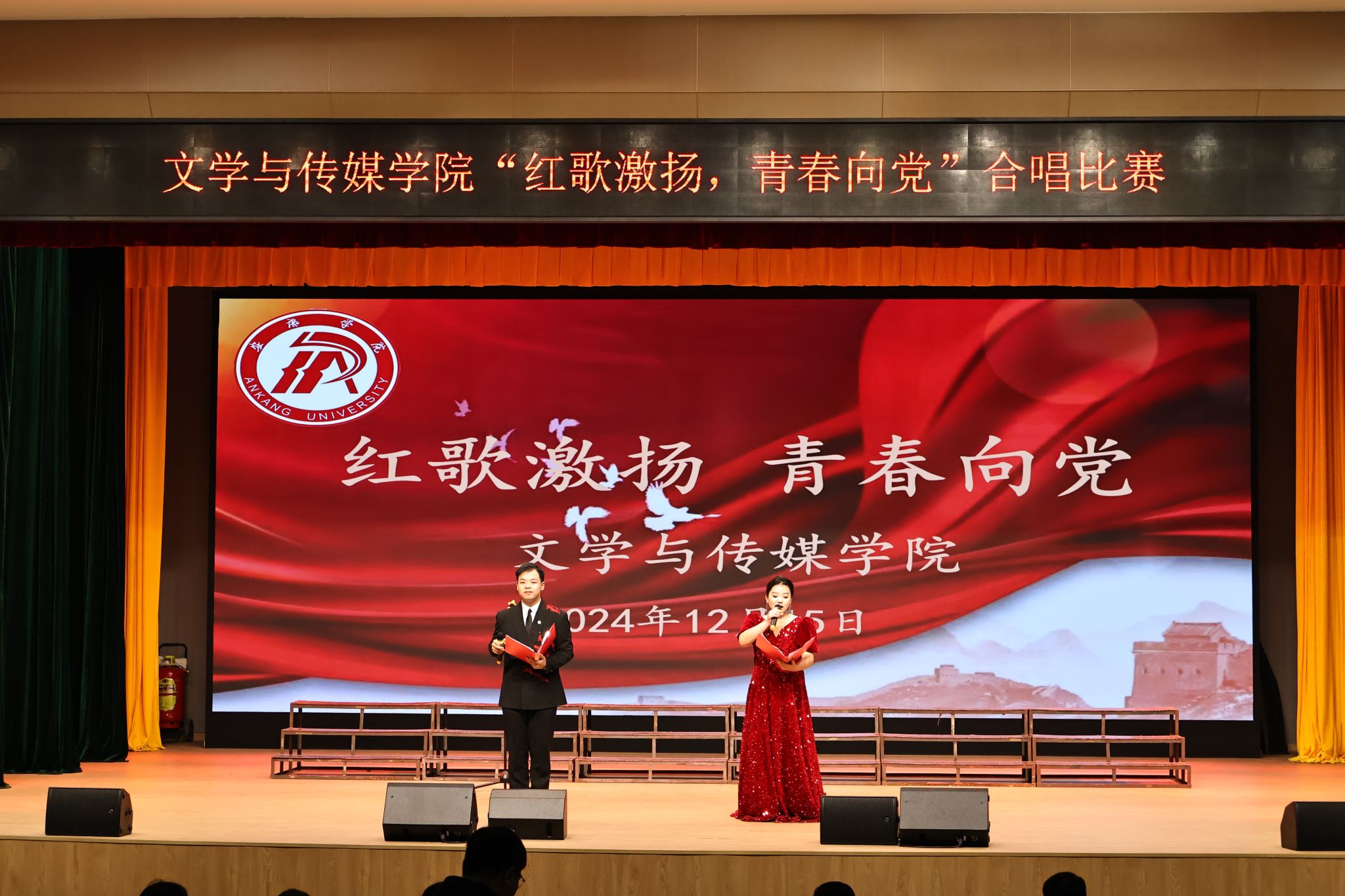 12月15日晚,1683168 3诸侯快讯入口在江南校区大礼堂成功举办了主题为“红歌激扬,青春向党”的合唱比赛。此次活动旨在通过红歌传唱,激发学生的爱党爱国情怀,增强集体凝聚力,展现新时代青年的精神风貌。学院1-3年级25个班级全部参赛,李祉怡、李炫烨主持。校团委组织宣传部部长沙薇、学院党总支副书记杨海蓉及院全体辅导员担任本次合唱比赛评委。