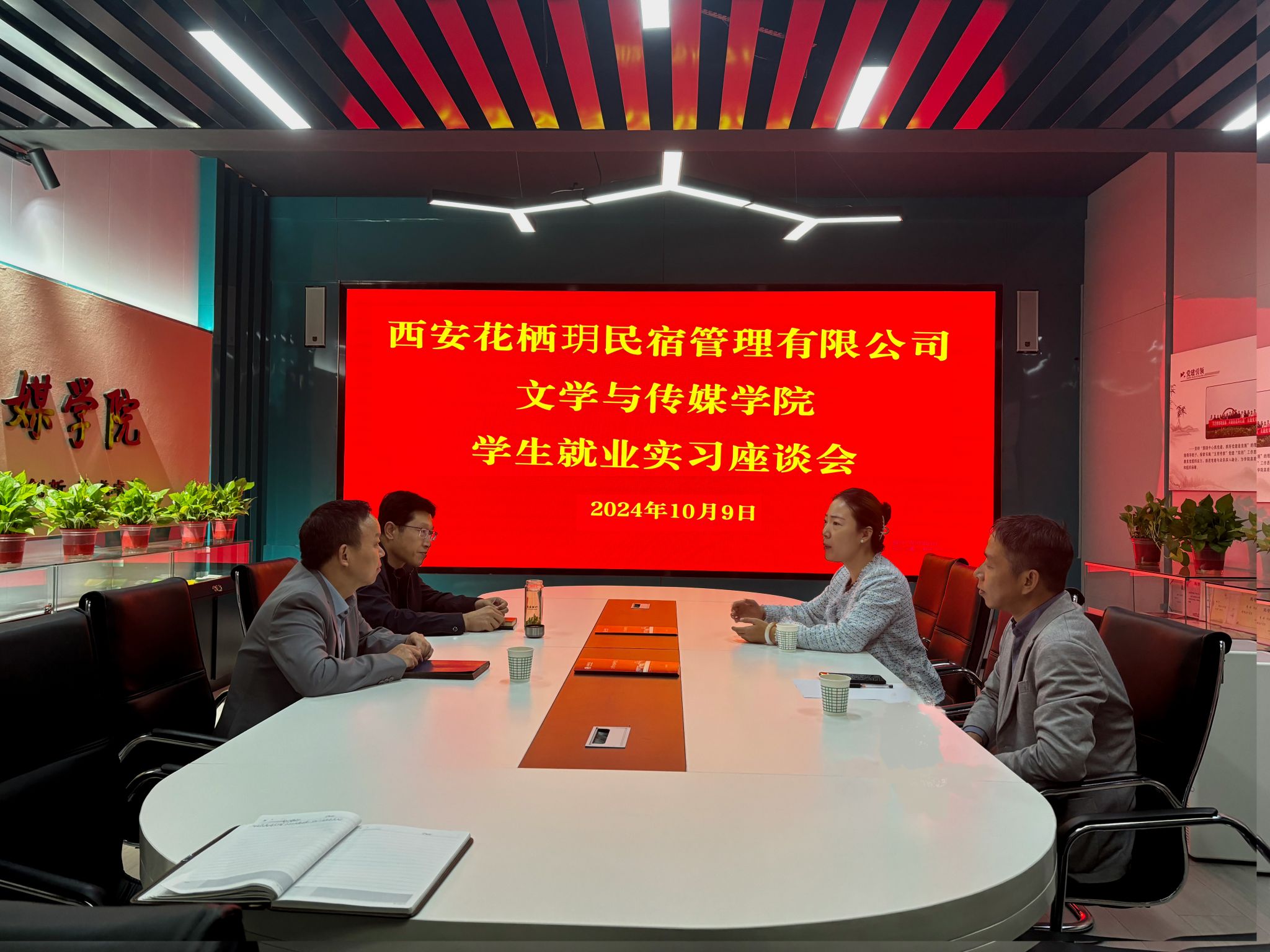 为进一步加强学院与企业之间的沟通与合作,为学生提供更好的实习和就业岗位,10月9日,1683168 3诸侯快讯入口与西安花栖玥民宿管理有限公司在江南校区2309会议室举行毕业生就业实习座谈会。西安花栖玥民宿管理有限公司总经理郭媛媛,项目负责人李楠,1683168 3诸侯快讯入口院长杨运庚、党总支书记芦伟出席参加本次活动。