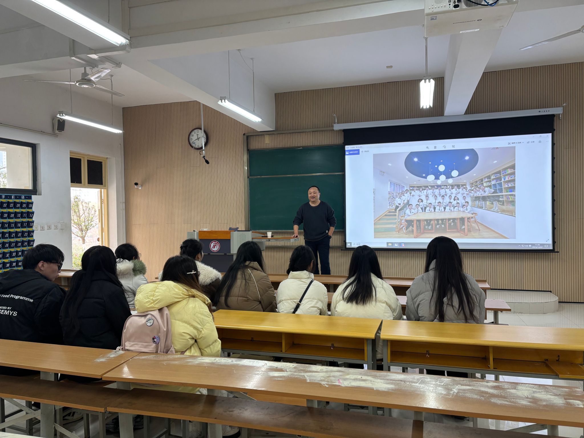 会上,李校长详细介绍了宝鸡智博学校的办学理念、发展历程、师资力量以及取得的教育成果,重点阐述了本次招聘的岗位需求,包括各学科教师岗位的职责、任职要求等关键信息,并对学校为教师提供的职业发展路径和福利待遇作了说明,让同学们对未来的工作有了清晰的认知。
