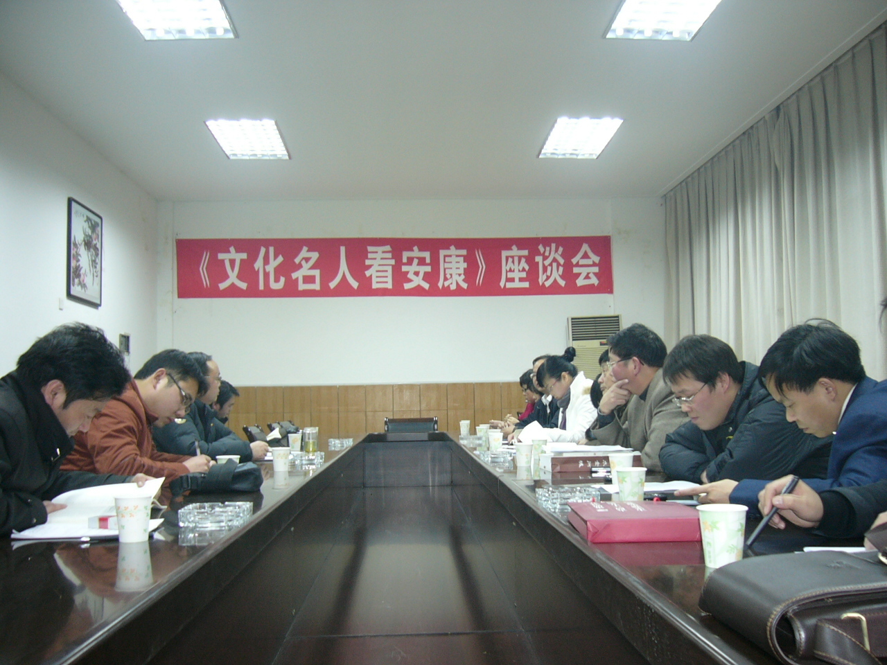 2010年1月4日晚7:30,中文系组织召开《文化名人看安康》座谈会。会议由系主任戴承元主持,市委宣传部副部长马昌琪到会讲话,中文系教师周政教授、孙鸿教授、著名作家李春平等20人参与座谈研讨。