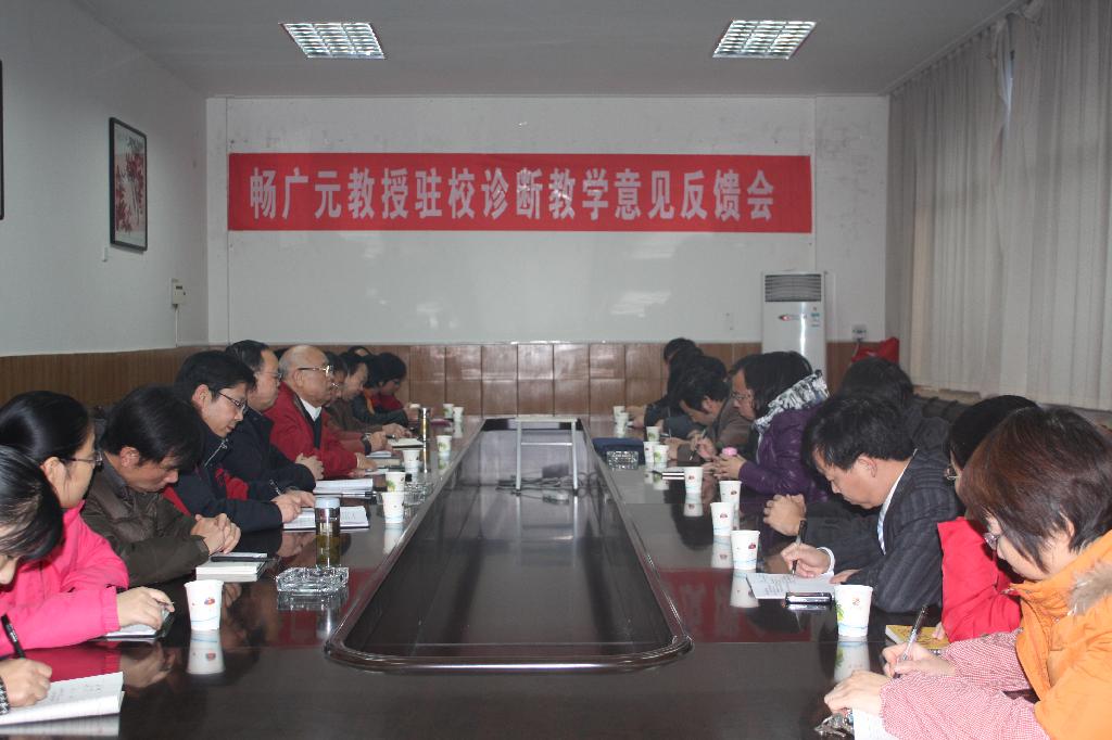 2010年12月13日下午3点至5点,中文系在学院第一会议室召开了“畅广元教授驻校诊断教学意见反馈会”, 中文系全体教师、教务处处长单福东和评建办主任金华锋参加了本次反馈会,反馈会由中文系主任戴承元主持。