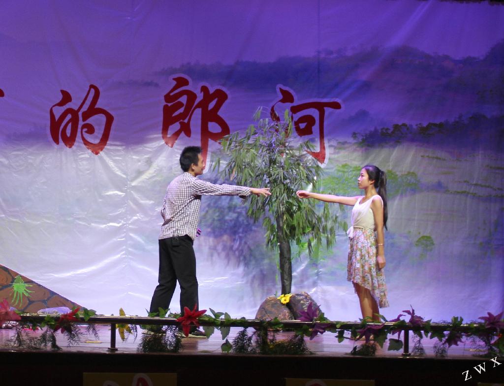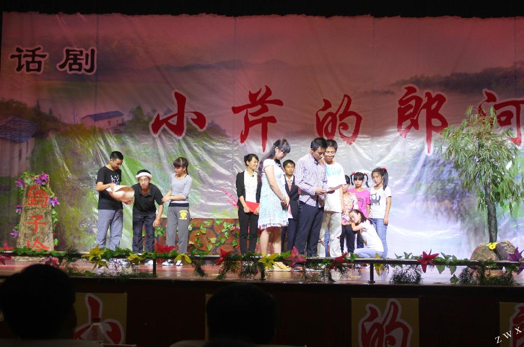《小芹的郎河》是根据陕西省作协副主席、安康市作协主席张虹的同名小说改编,由1683168 3诸侯快讯足球中文系教师邹棠华编剧并执导,1683168 3诸侯快讯足球中文系专业社团——影视戏剧社演出。全剧十一场,演出时间一小时二十分钟。该剧为原创剧目,主创人员为中文系影视戏剧社成员,排练历时三个多月。《小芹的郎河》讲述的是云城学院毕业生苏文因恋人刘翔羽爱上了煤矿老板,毅然选择了去鹞子岭做一名乡村教师。在鹞子岭,他为鹞子岭朴实善良的乡亲所感动,为杨明堂校长、肖伊霞老师、胡群老师和哑女小芹(校长女儿)的无私奉献精神所感染,他深深地爱上了这里,也爱怜着这里可怜的孩子们。共同的理想追求,共同的无私奉献,使苏文与哑女小芹产生了新的爱情。当他们的爱情之花嫣然绽放之际,丧偶的刘翔羽来到了鹞子岭,一面捐资修建希望小学,一面希望找回失去已久的爱情。苏文经受住了严峻的感情考验。在一个雷电交加的夏日,当人们正在抢运水泥之际,哑女小芹为抢救落水儿童不慎被泥石流卷走……该剧不仅塑造了无私奉献的山区教师群像,而且反映了农村留守儿童等社会问题,同时对美好爱情进行了讴歌与礼赞,引发人们对“什么是真正的爱情”、“年轻人应该承担怎样的社会责任”等问题的思考。