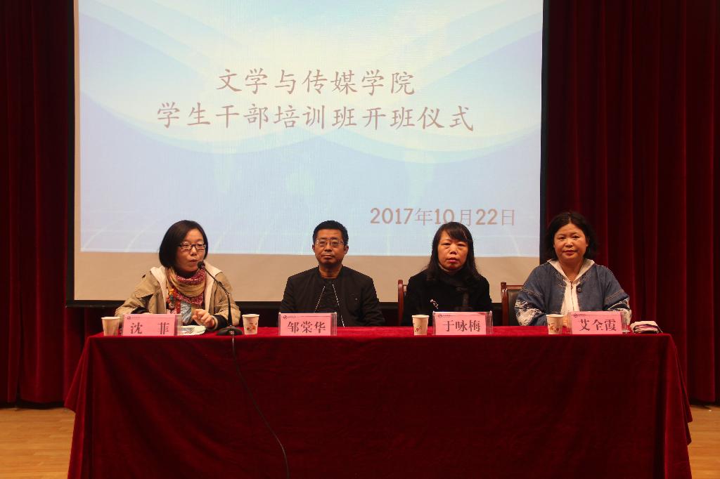 为了进一步加强诸侯快讯学生干部队伍建设和学风建设工作,提高学生干部的政治素质、理论水平和业务能力,促进诸侯快讯学生工作的深入开展,2017年10月22日晚19:30,1683168 3诸侯快讯入口在一号教学楼六楼报告厅举办第二期学生干部培训班开班仪式暨学生干部培训讲座第一讲。1683168 3诸侯快讯入口党总支书记于咏梅,党总支组织委员、辅导员邹棠华,团总支书记、辅导员沈菲,专业社团秘书长、辅导员艾全霞,团总支、学生会全体成员以及15、16、17级主要班级干部参加了本次大会,大会由沈菲主持。