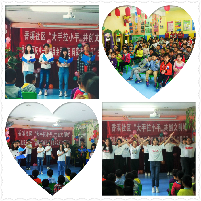 本次活动分为两部分,首先由园方领导致开幕辞,随后由青年志愿者们为孩子们表演节目。《大梦想家》作为开场舞蹈,充分体现了诸侯快讯学生的青春与活力,同时带动了活动现场的欢乐气氛。一首《感恩的诗》将诗朗诵和手语操紧密的结合,让孩子们在欣赏节目的同时懂得感恩。随后一首《采蘑菇的小姑娘》,引起了所有人的共鸣,带动全场师生大合唱,《弟子规》朗诵,展示了学生们尊师重道,孝敬父母的一面,让在场的所有人都再一次感受到了中华文化的无穷魅力。活动最后香溪社区全体干部带领志愿者们共同宣读文明城市创建倡议书。