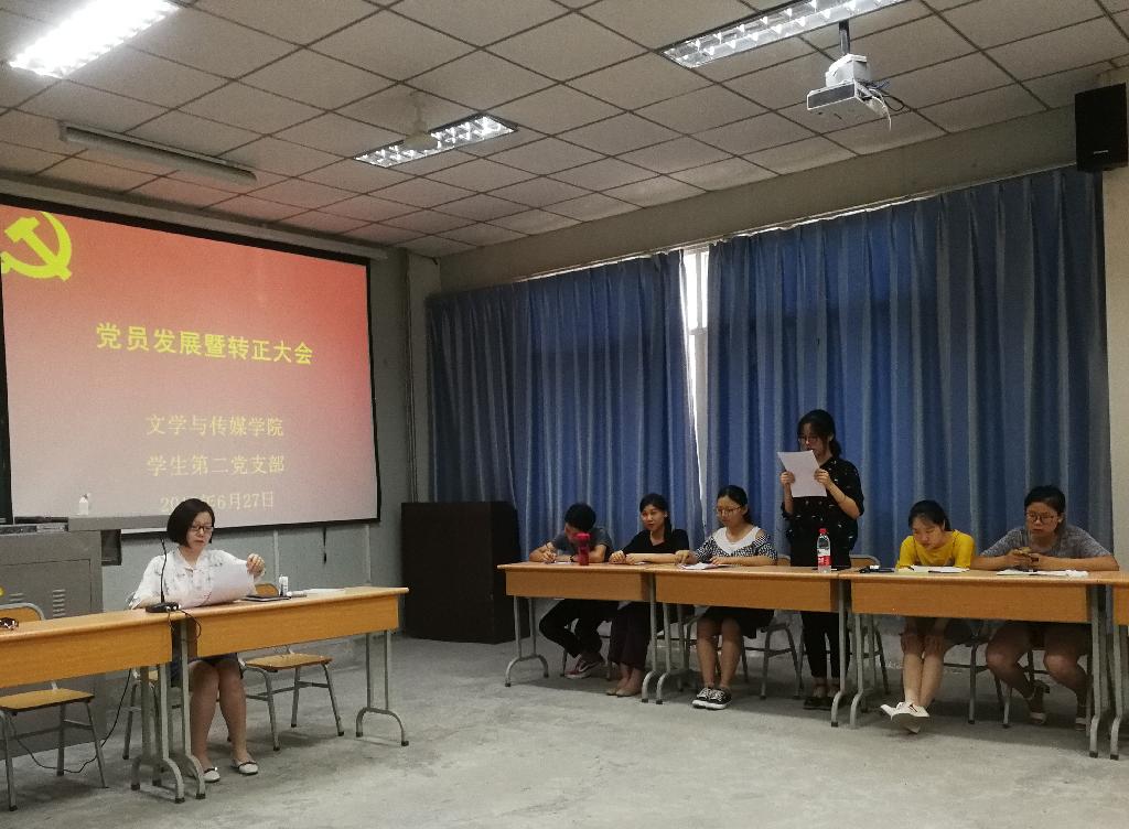 2018年6月27日下午,1683168 3诸侯快讯入口学生第二党支部在1017教室召开接收中共预备党员暨中共预备党员转正大会。1683168 3诸侯快讯入口党总支书记于咏梅、学生第二党支部书记沈菲、学生第二党支部全体党员参加了本次会议。会议由沈菲主持。